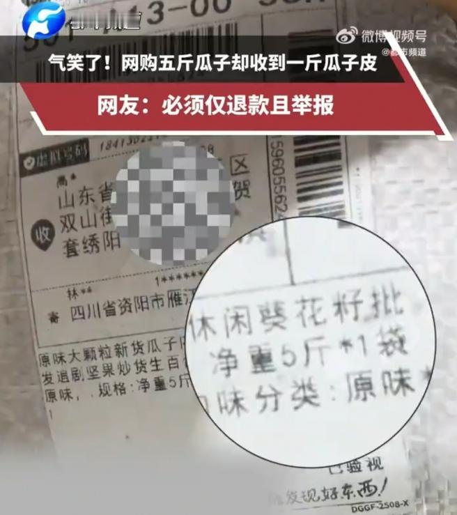 山东一男子花29.9元网购5斤瓜子,收货一称才一斤多。正想吐槽店家缺斤少两,谁知,嗑了一颗后直接傻眼,原来之前那点亏根本不算啥! 山东这名男子平时就喜欢吃瓜子,闲暇时总爱嗑上一把。前段时间,他在网上刷购物软件时,看到一款瓜子正在促销, 宣传页面上醒目地写着“5斤装仅售29.9元”,算下来一斤还不到6块钱,比线下超市便宜不少。看着页面上饱满硕大的瓜子图片,男子没多想就下了单,满心期待着收到一大包瓜子慢慢享用。 下单后没几天,快递就送到了。男子兴高采烈地拆开快递包装,可拿出里面的瓜子袋时就觉得不对劲——袋子轻飘飘的,完全没有5斤物品该有的重量。 他心里咯噔一下,赶紧找出家里的电子秤,把瓜子连带包装一起放了上去,秤上显示的数字让他瞬间怒火中烧:连包装在内才1.3斤,就算扣除包装重量,实际瓜子重量也只有一斤多一点,和商家宣传的5斤相差甚远。 男子当即就想打开购物软件找店家理论,还准备拍个视频吐槽这种明目张胆的缺斤少两行为。他随手抓了一把瓜子放在手里,想先确认下瓜子的状态,然后就剥开一颗放进了嘴里。 可瓜子刚入口,他就皱起了眉头,紧接着脸色变得越来越难看,原本的愤怒也被惊讶取代。这颗瓜子压根没有饱满的果仁,咬开后是空的! 男子愣了一下,又接连剥开好几颗查看,发现眼前这把瓜子里,十颗有八颗都是空壳子,要么是只有一层薄皮的瘪仁,要么干脆是空壳,能找到几颗饱满的简直难上加难,和商家宣传页面上果仁饱满的样子判若两人。 男子尝试联系店家客服,说明情况并要求退款赔偿。可客服一开始还敷衍回应,说重量差异是运输中的正常损耗,瓜子空壳多可能是品种问题或者运输中挤压导致的。 当男子提出要上传称重视频和瓜子空壳情况的照片时,客服的态度才有所软化,提出可以全额退款,但拒绝额外赔偿。 双方就赔偿问题僵持不下,客服之后便不再回复消息。无奈之下,男子只好向购物平台投诉,提交了称重记录、瓜子质量问题的照片和视频等证据。 平台客服表示会介入调查,核实情况后会给出合理的处理方案。目前,平台还在对该商家的经营资质和商品情况进行核查,处理结果尚未公布。 网友表示,遇到这类问题不能自认倒霉,要学会保留证据维护自己的合法权益,比如称重记录、商品照片、与客服的聊天记录等,这些都是维权的重要依据。同时,也希望平台能加强监管,严厉打击缺斤少两、销售劣质商品的不良商家,净化网购环境。 这场看似普通的网购纠纷,也再次暴露了网购食品领域存在的乱象。低价促销背后,可能隐藏着缺斤少两、以次充好等诸多套路,消费者稍有不慎就可能中招。对于商家而言,靠欺骗手段谋取利益终究不是长久之计,只有诚信经营才能赢得消费者的信任。 对此,你们有什么看法,欢迎评论留言~
