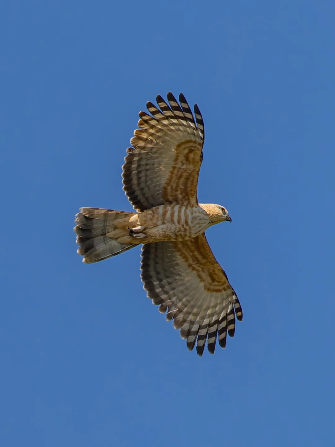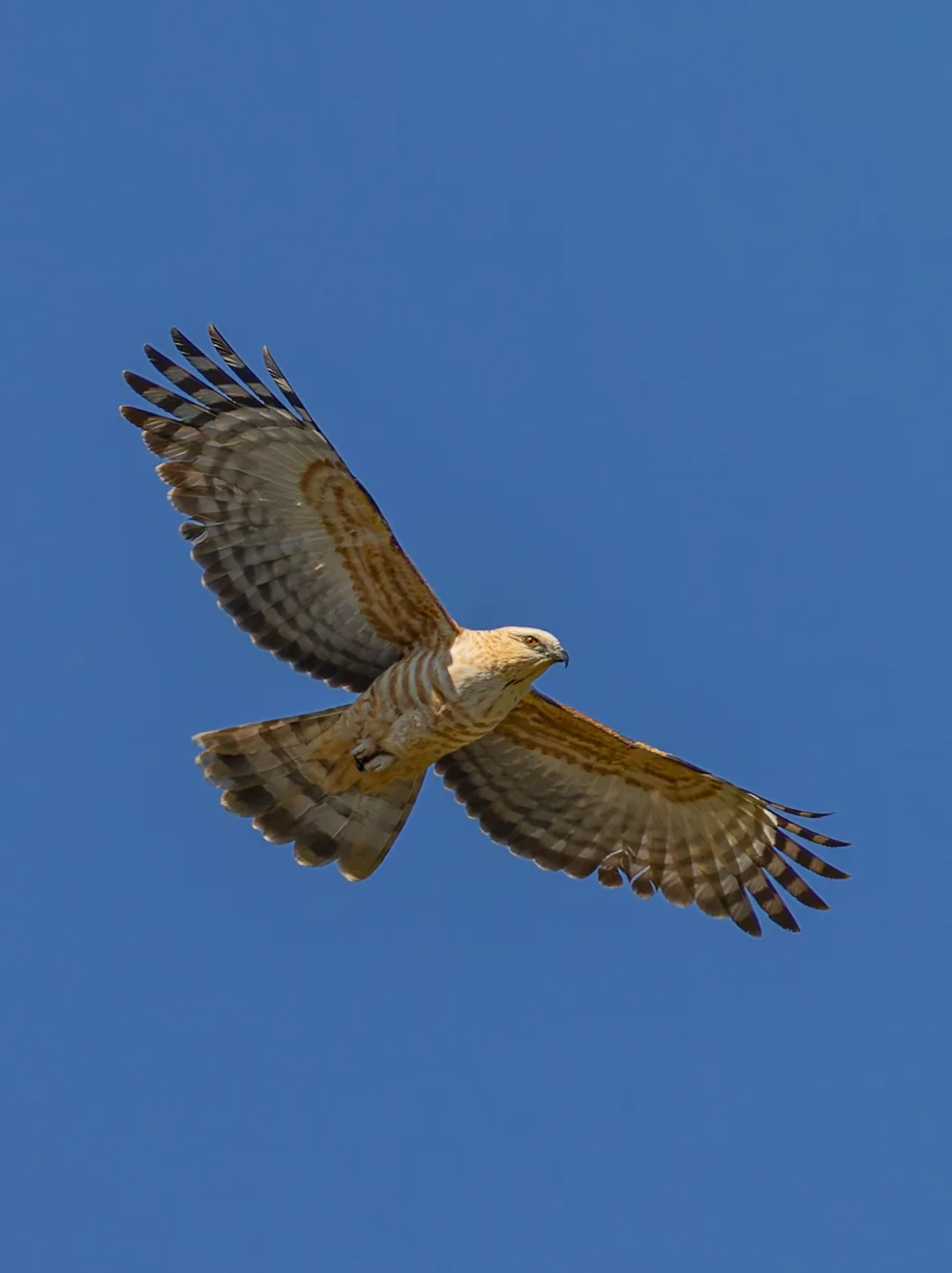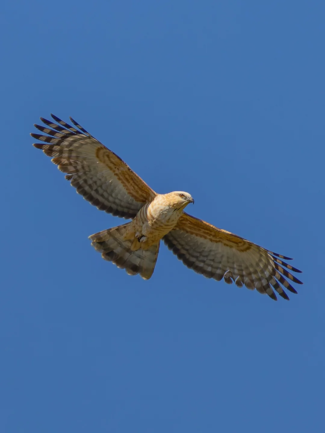 原创拍摄于2026.01 褐冠鹃隼,Jerdon's Baza,鹰形目鹰科鹃隼属。热带森林猛禽。国家二级保护动物。胸腹具淡红褐色横斑,所以叫鹃隼。 当日得知褐冠鹃隼捕捉到一只血雀,并持续在血雀逗留地点上空盘旋,威慑感十足。阳光洒在山间,褐冠鹃隼展翅翱翔,羽翼边缘泛着金光,像披了件流动的铠甲!
