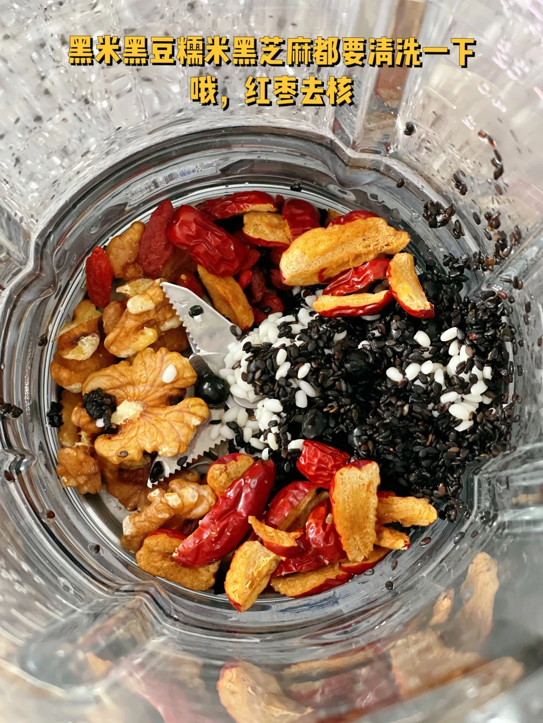 2. 黑米黑豆糯米黑芝麻都要清洗一下哦,红枣去核