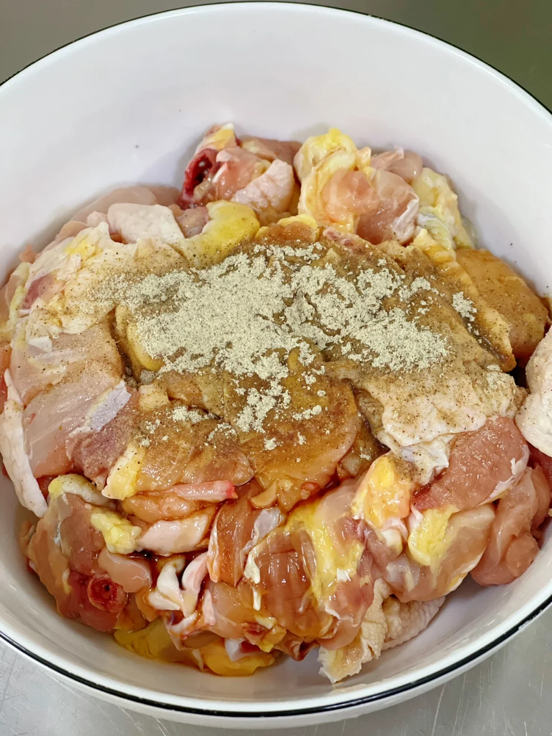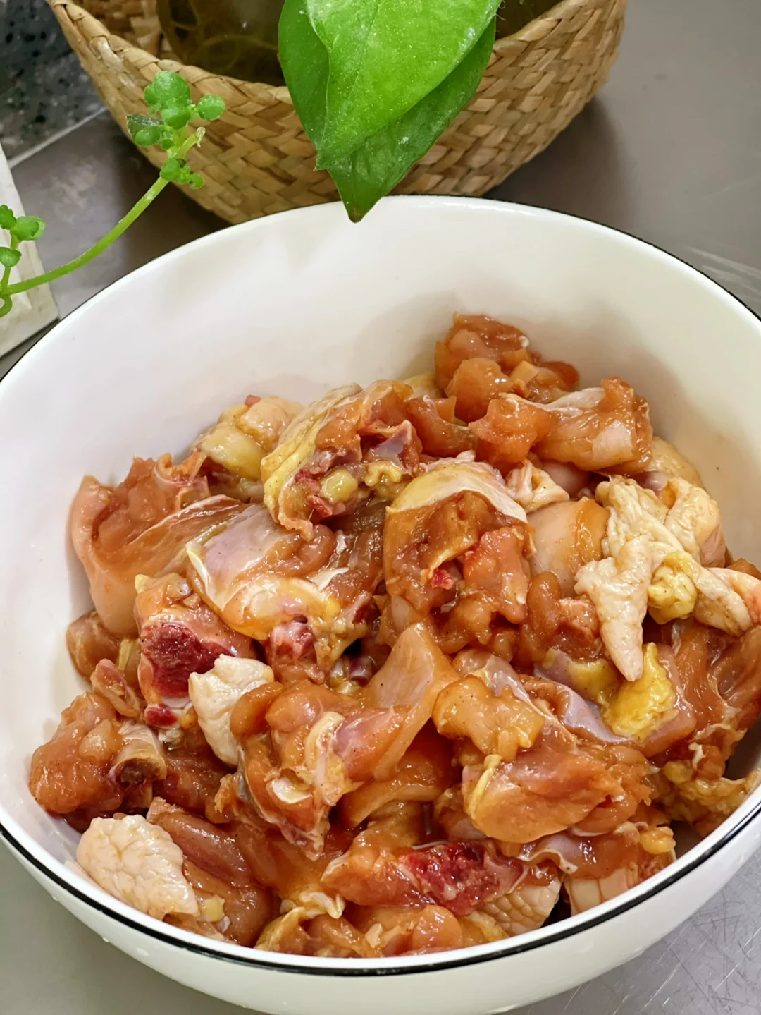 3. 在腌制的过程当中也要记得上下搅动一下,这样才能保证全部鸡肉腌制入味