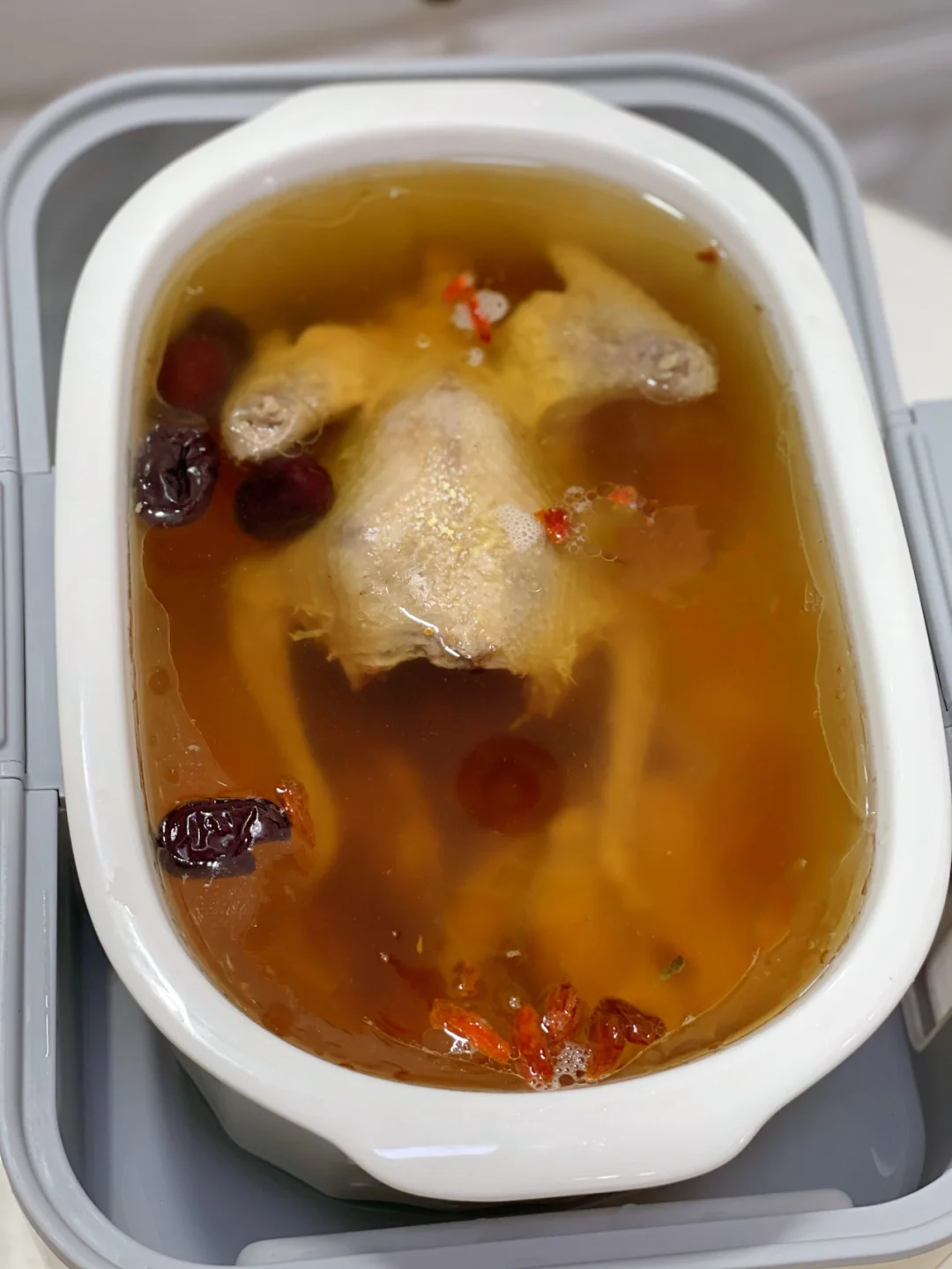 5.按精炖键开始慢炖,时间允许的话两个小时左右就可以啦,汤好了以后放适量盐即可,有和我一样煲好烫只喝汤不爱吃肉的吗 吃午餐之前先喝了一大碗呢