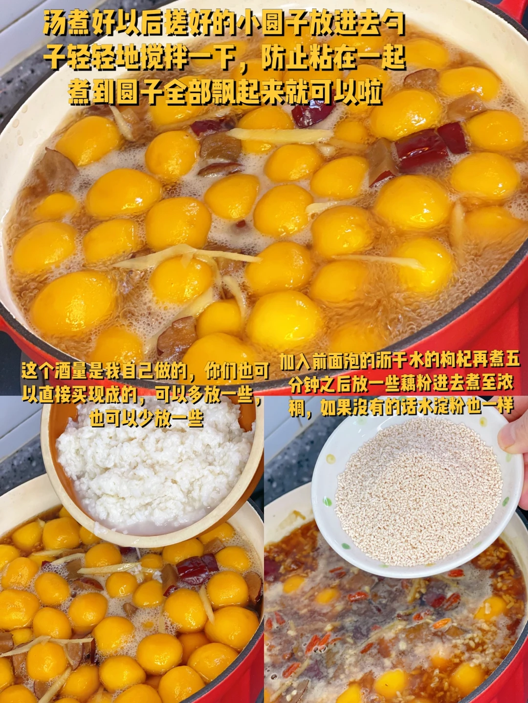 10. 加入前面泡的沥干水的枸杞再煮五分钟之后放一些藕粉进去煮至浓稠,如果没有的话水淀粉也一样