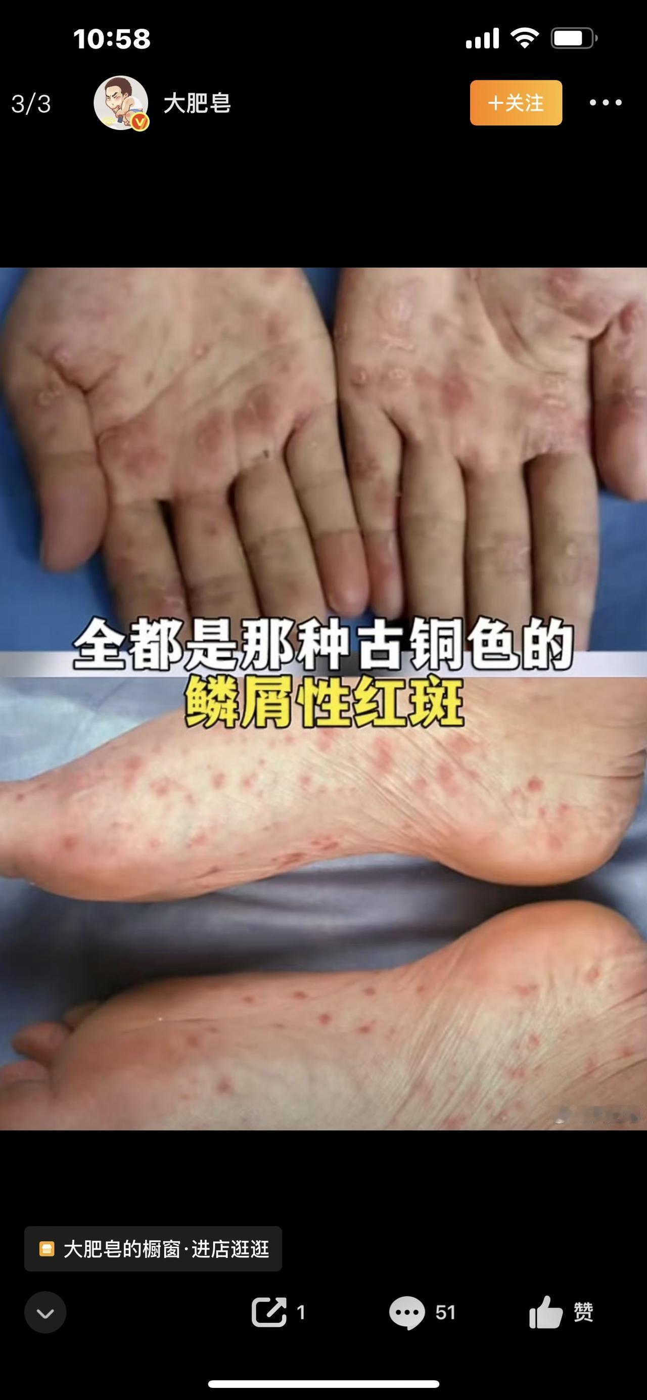 梅毒是什么“毒”?一人染病全家遭殃,这病比你想的更可怕! “医生,我就只是身上长了几个疹子,怎么就查出梅毒了?”小王拿着检查报告,满脸不敢置信。你以为梅毒离你很远?错!它可能就藏在你忽略的细节里,甚至让全家都陷入危机…… 梅毒,是由梅毒螺旋体引起的性传播疾病,但它的“毒”远不止于此。早期可能只是皮肤长疹子、溃疡,可一旦拖到晚期,它会攻击心脏、大脑、骨骼,甚至导致瘫痪、痴呆!更可怕的是,孕妇感染梅毒,可能让胎儿早产、流产,就算孩子出生,也可能带着先天梅毒,一辈子一辈子的“枷锁”。 你以为只有乱搞才会得梅毒?转折点来了!有人住了次酒店,用了不洁毛巾就中招;有人纹了个身,因为器械没消毒被感染。梅毒的传播途径比你想象的更隐蔽,它就像个“潜伏者”,悄无声息地入侵你的生活。 但别慌!梅毒早发现是可以治愈的。可现实是,很多人因为羞耻心不敢就医,硬生生把小病拖成了绝症。想想看,为了一时的疏忽或侥幸,赔上自己和家人的健康,值得吗? 其实,预防梅毒很简单:注意个人卫生,避免高危行为,定期做体检。别让“不好意思”成为健康的绊脚石,毕竟在生命和健康面前,所有的面子都不值一提。转发给你关心的人,别让梅毒这颗“毒瘤”,毁了本该幸福的生活!梅毒 性病 梅毒晚期症状 性病潜伏期 性病症状 梅毒疫情