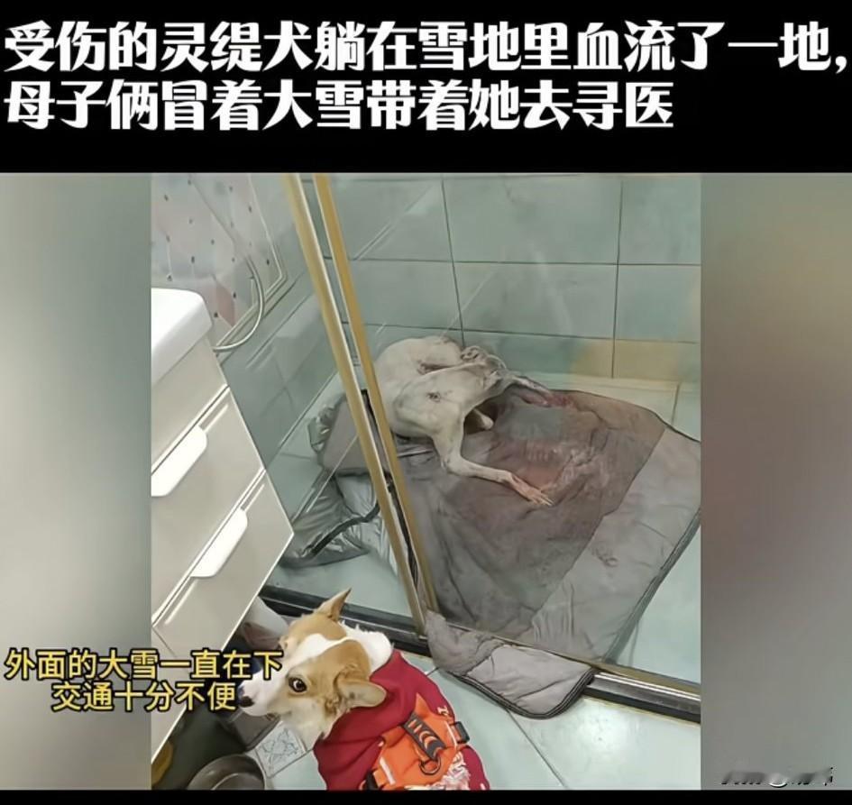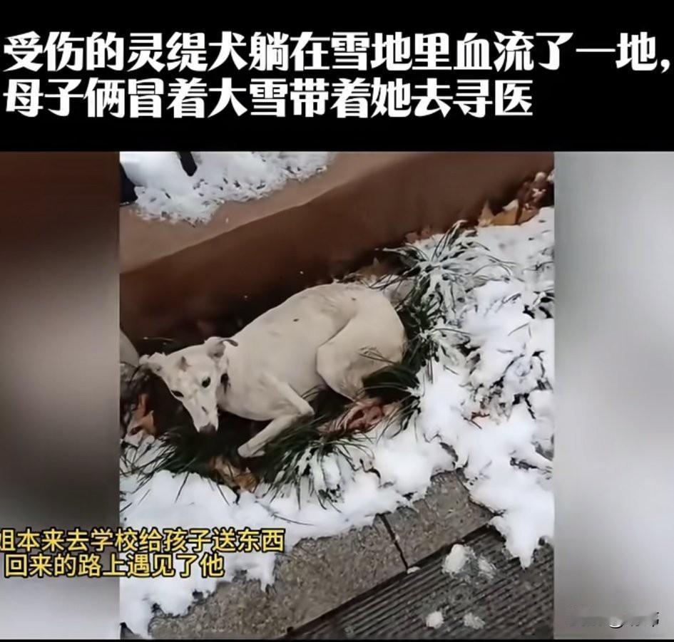 泪目了!这是一个雪天,一位小姐姐去学校给孩子送东西,结果在路边看到了一只可怜的狗狗趴在花坛里,它的腿还受了伤,鲜血流了一地,由于急着去找孩子,她就匆匆走了,可她一直挂念这只狗狗,而因为下大雪,学校提前放学,老师就让她把孩子带回去。 于是母子俩就来到发现狗狗的地方找它,可发现狗狗已经走了,他们只好顺着狗狗的血迹去寻找狗狗,这一找就是半个多小时,终于在一个停车场的一辆蓝色汽车车底找到了受伤的狗狗,小姐姐也是费了九牛二虎之力才把它哄出来带去宠物医院治疗,幸运的是狗狗的伤不算严重,住院治疗几天就能出院。 后来在它出院之后,小姐姐母子俩收养了这只可怜的狗狗,在他们的照顾下狗狗也是越来越好了。