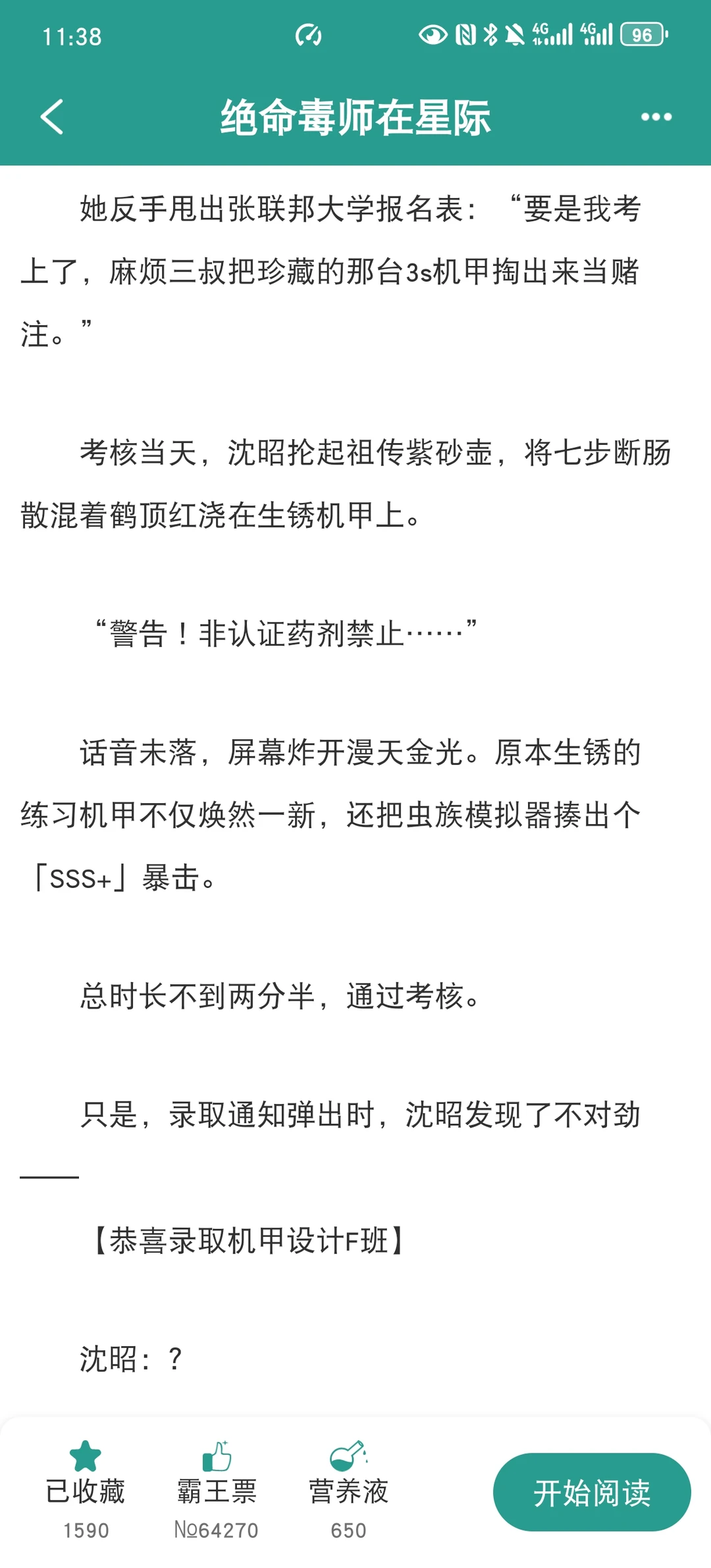 属于是六边形战士级别的 就我看到的最新一章,女主已经达成以下成就: 打脸看不起她的家族众人✓ 拿到3s机甲✓ 黑市店铺开张✓ 改良药剂上拍卖会✓ 考入宇宙顶尖学府星际联邦大学✓ 辅修制药专业✓ 拿到地下搏斗场的地契✓ 拜入星际顶级机甲设计大师名下✓ …… 目前五十多万字,全文节奏快但是又恰到好处,作者是一点文也不水啊,每章内容巨充实,女主也是真的强