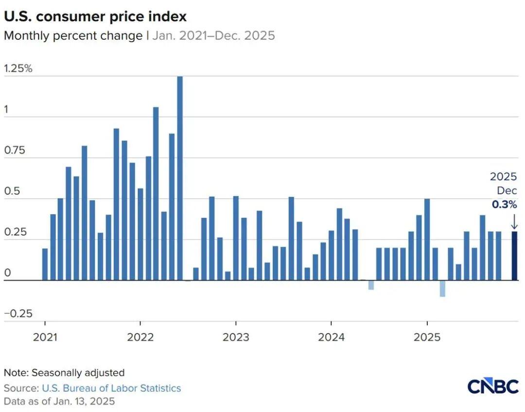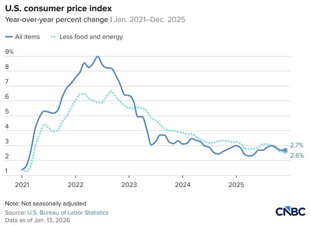 据美国商务部最新公布的消费者价格指数报告显示,12月份同比通胀率为2.7%,与 11月份持平;环比通胀率由0.1%上升至0.3%。剔除食品和能源价格的核心通胀率环比上涨0.2%,低于预期。总体而言,这份通胀报告相对温和,表明美国消费者可能会获得一些有限的空间来缓解物价压力,同时也让特朗普在其政府努力应对“可负担性”问题时稍微多了一点回旋余地。不过,与此同时,最新数据显示,用电、燃气、外出就餐费用以及部分食品价格较一年前仍有大幅上涨,这正是令许多选民感到价格冲击的重要原因。 近几周来,白宫官员一直在仓促寻找应对住房成本上升的办法,权衡多种措施,以增加住房建设、降低部分按揭费用、减轻房屋出售税负以及允许家庭动用教育储蓄和退休资金作为首付款。但白宫的助理们也逐渐意识到,许多设想要么过于复杂,要么需要国会批准。而且,政府内部也并非人人都赞成在这一领域全面发力,一些人认为这主要是“蓝州的问题”。 这份通胀报告对美联储决策者来说当然是至关重要的,因为当前一场旨在保护美联储主席鲍威尔免受联邦刑事调查的行动正在全球范围内展开。来自世界各地的央行行长史无前例地联合发表声明,表示完全与鲍威尔站在一起,反对任何削弱美联储独立性的行为。在华尔街,摩根大通首席执行官杰米·戴蒙等多位银行业领袖也发声反对“任何侵蚀”美联储独立性的举动。与此同时,特朗普仍在对鲍威尔加码施压。他在周二上午对记者谈及鲍威尔时表示:“他要么是无能,要么是腐败。” 图片来源于网络