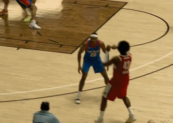 杨瀚森反手重扣 北京时间1月15日,G联赛,混音与蓝色的比赛来到第二节初,混音阵地战,队友终于不再胡扔三分,将球吊向内线,虽然传的并不好,但是,杨瀚森还是凭借身高拿下球权,顺势就是一记原地反手扣篮。 希望队友们能够意识到,杨瀚森面对蓝色队员拥有绝对身高优势,能够更多输送炮弹。
