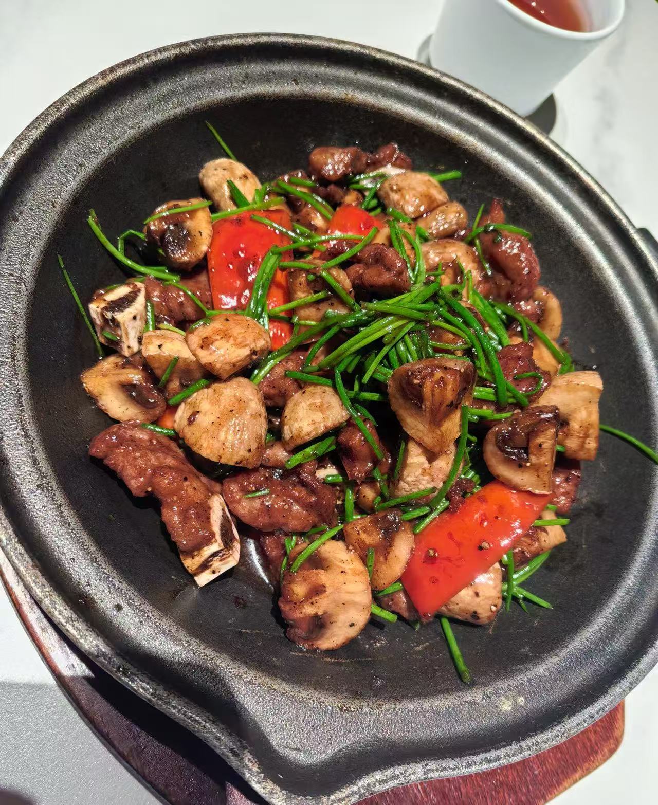 4️⃣.黑胡椒蘑菇牛仔骨,一起砂锅煎,吃起来牛仔骨嫩,口蘑香气十足。