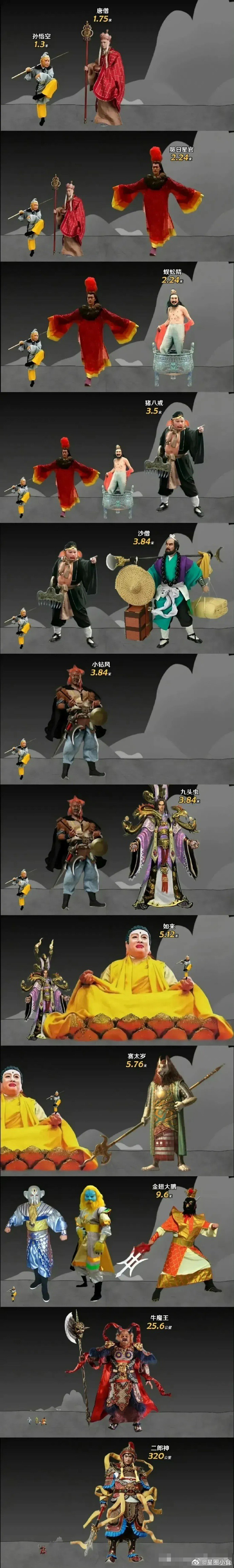 《西游记》中各个人物的真实身高,猴哥居然是最矮的