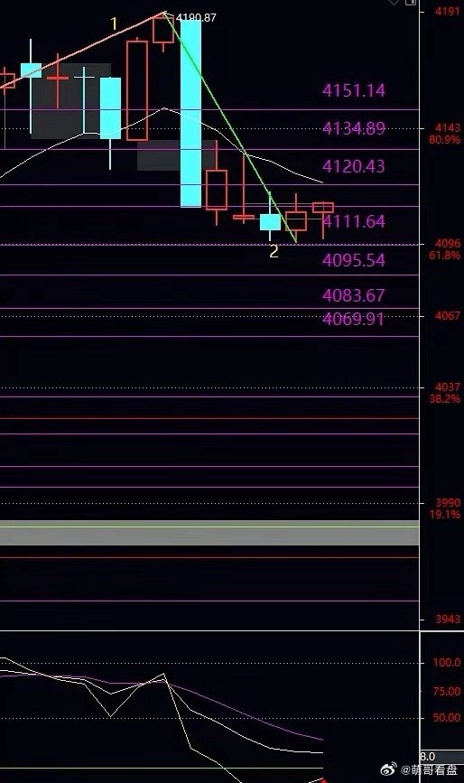 明日提示:今日上证指数下跌13.49点,盘中最低4096.85点,收盘报4112.60点,成交量为11759亿,量缩。明日支撑4111阻力位4135大盘缩量回踩,60f2浪回踩现低点,明日看能否出底分突破4135点走上行3浪,继续等待2浪回踩结束后回抄。等待60fKDJ金叉信号