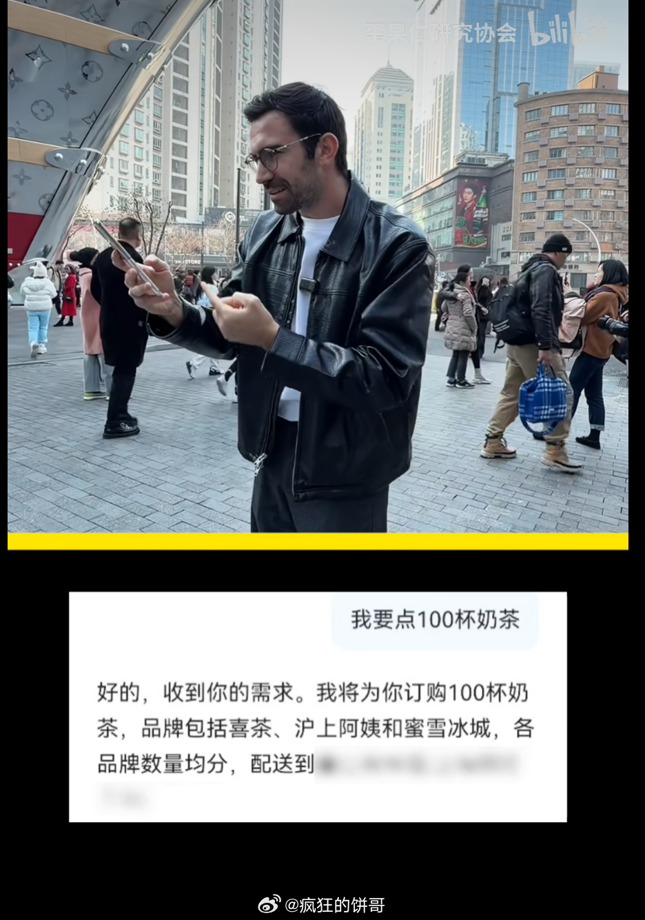老外被AI点的奶茶拿捏 现在的AI已经变成:今天让它帮我干点啥?老外实测了下中国的AI点了100杯不同口味的奶茶,然后随机投喂外国友人,不是提前选、不是人工搭配,全程都交给AI,老外们知道这100杯都是AI点的之后,直接用千问AI玩嗨了,上手体验起来了点外卖、买东西。