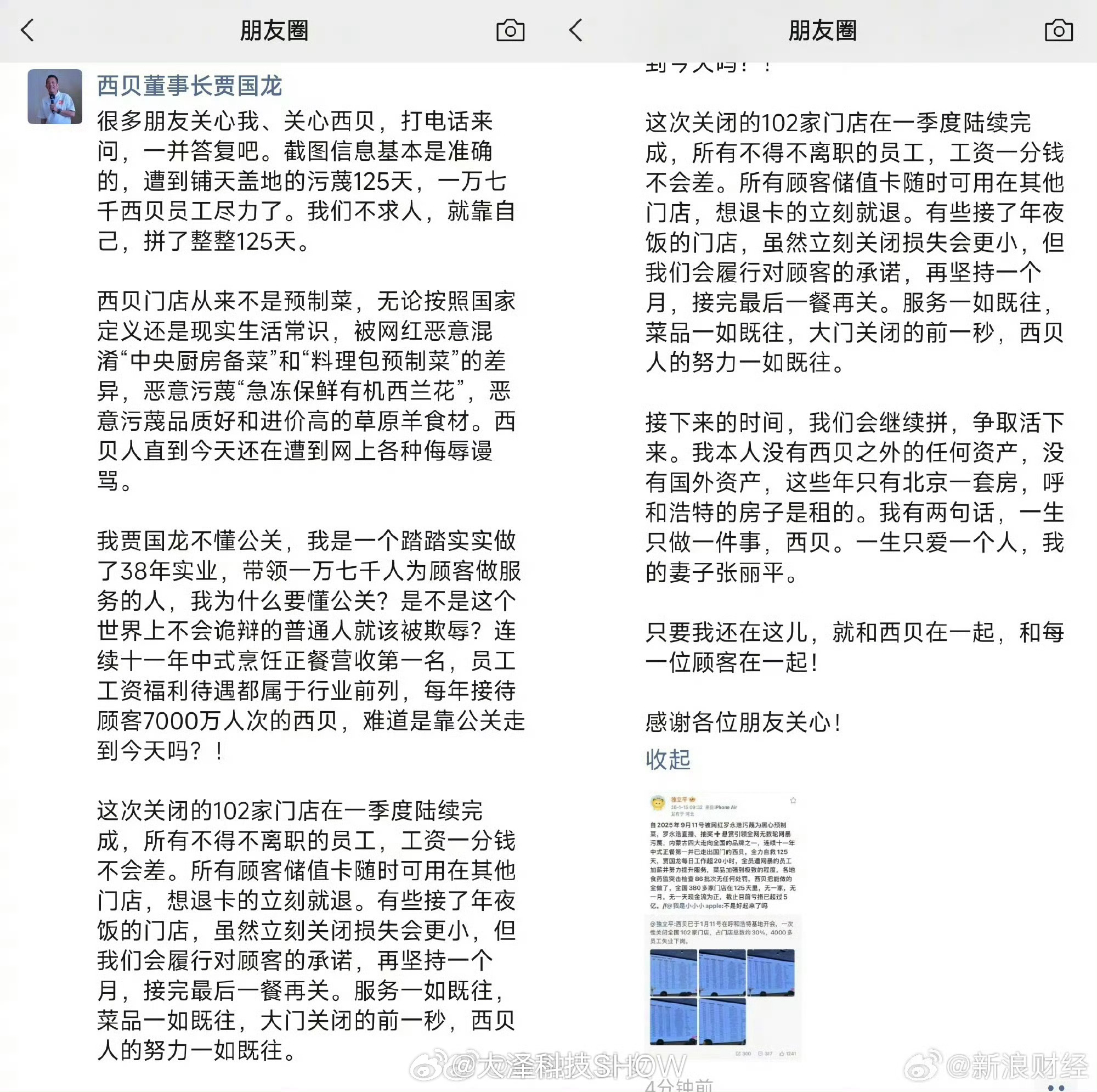 贾国龙朋友圈称尽力了贾老板是不把西贝弄倒闭了不罢休啊……