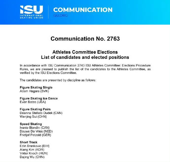 隋文静武大靖竞选ISU运动员委员会委员🌟 双奥冠军联手出征:刚官宣退役的短道速滑名将武大靖(2枚冬奥金牌得主),搭档花滑冬奥冠军隋文静,共同冲击国际滑联(ISU)运动员委员会委员席位,赛场之外再续荣光。岗位核心价值:ISU运动员委员会负责传递运动员声音、参与规则优化等关键工作,此前中国选手周洋曾担任该委员会委员,两人有望延续中国冰雪人的国际话语权。期待理由拉满:一个是短道速滑的“拼搏标杆”,一个是花滑界的“破局者”,顶尖大赛经验+对项目的深刻理解,让他们成为极具竞争力的候选组合,坐等好消息!