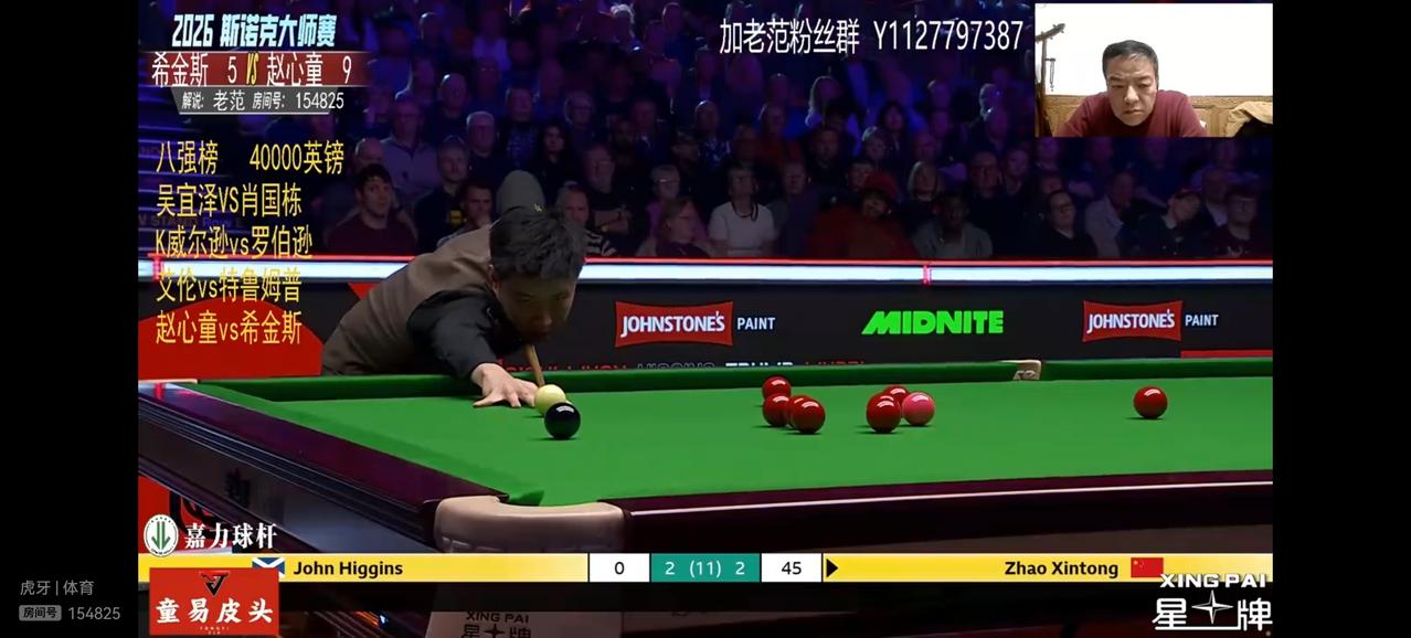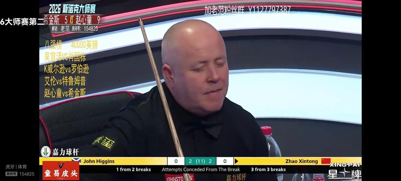 赵心童惨遭希金斯淘汰。 斯诺克大师赛1/4决赛,我国选手赵心童在3:5领先的大好形势下,被老将希金斯连扳三局,最终5:6惨遭淘汰,无缘四强。 最可惜的是决胜局,赵心童领先19分,打最后一颗红球时出现失误,给希金斯留下了进攻的机会,希金斯没有让机会流失,一杆制胜。 个人认为赵心童的最后一颗红球进攻把握性不大,可以做一个防守,而赵心童偏偏选择了进攻,给希金留下了机会。 姜还是老的辣,从这场失败中赵心童应该向希金斯学习把握机会的能力和永不放弃的精神。