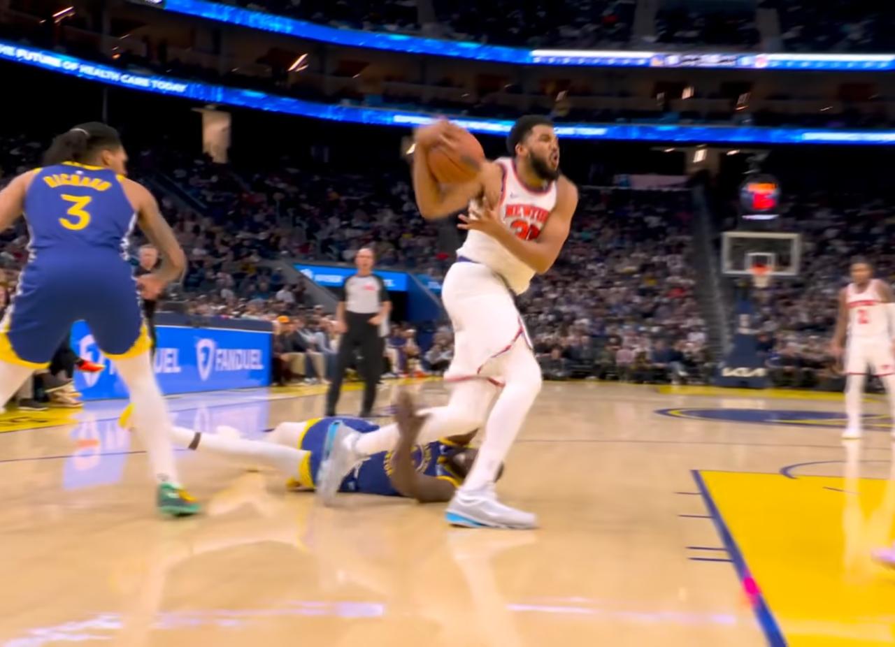 裁判手下留情!追梦格林手拉唐斯腿部竟然没被驱逐! 追梦格林在一次防守唐斯时被对方撞倒在地,但是追梦格林却没有放弃“防守”,他双手去抓唐斯腿部,结果导致唐斯重摔倒地。 追梦格林的本次动作已经是非篮球动作,是明显的恶意伤人行为,裁判在观看比赛回放后只给了普通恶意犯规,并没有直接将追梦格林驱逐离场,不得不说裁判真的手下留情了,唐斯也没有生气和追梦格林计较!