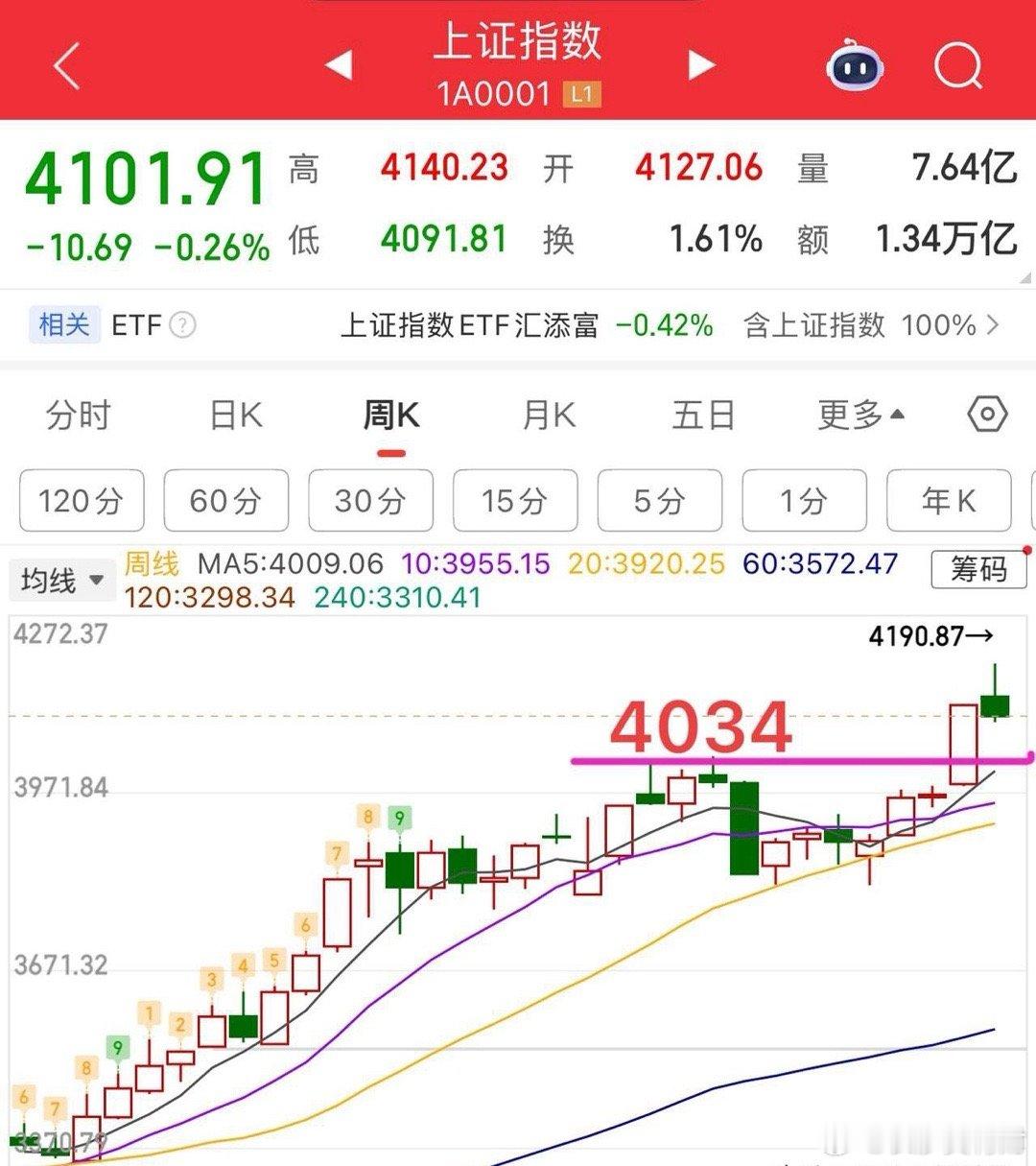 午后ETF异动放量!市场继续“降温”。周五大盘高开低走,收了根小阴线,目前来看市场情绪面还是偏低迷,但还未到冰点,两极分化比较严重,基本上指数与预期一致,继续横向震荡。侧本周结束了,周线上也是走了个冲高回落走势,目前回调还处于正常合理的范畴,不破4034就当作是回踩确认就是了。日线上,5日线逐步靠拢10/20日线,支撑区4098-4067,只要不破此中枢区间,完成震荡还有机会继续向上。AI应用,分时破位向下,下周初再破新低有反弹,但注意颈线压力!AI包括商业航天我个人认为趋势仍没有结束,耐心等调整结束。具体细节关注收评!