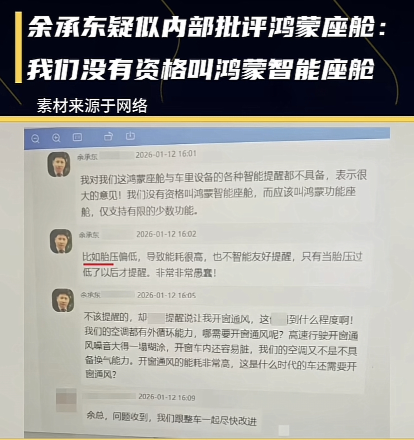 余承东疑似内部批评鸿蒙座舱,称我们没有资格叫鸿蒙智能座舱!他还举出...