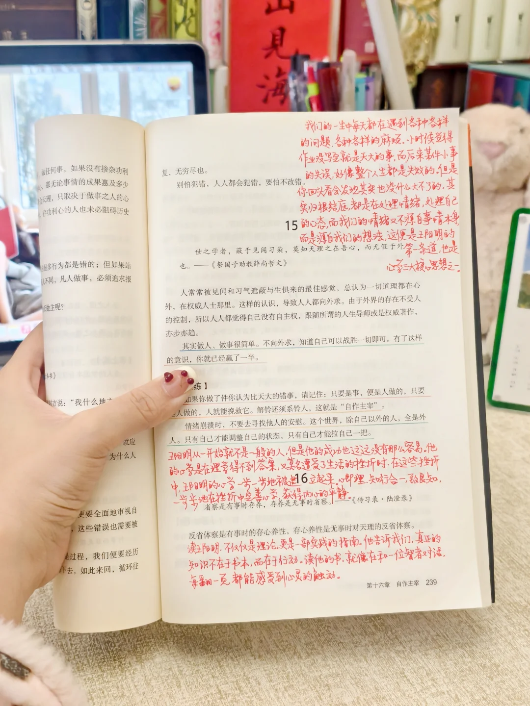 谁懂啊!最近真的被度阴山这本《王阳明心学日课21天》彻底戳中了心巴!读一段,内心就“天呐”一次!那种感觉,就像有人拿着精准的“心电起搏器”,哐哐哐直接给我那快枯竭的心力来了几记强心针! / 毫不夸张地说,王阳明就是我的古代“心理医生”!还是那种一针见血、药到病除的神医!我之前的状态belike:每天被各种焦虑、迷茫、自我怀疑轮番轰炸,内耗严重到感觉身体被掏空,干啥都没劲儿,一点小事就能纠结到天荒地老,整个人脆弱得像个玻璃娃娃。 / 但是这本书,它真的救了我!阳明心学,根本不是什么虚无缥缈的大道理,它就是一副实打实的“心药”!一副能让你从被动挨打的“小可怜”,蜕变成主动强大、内心通透平静到“可怕”的“大女主”的猛药! / 最最最戳我的,就是那句“山高万仞,只登一步”! / 以前我做事,眼睛永远死死盯着那个遥不可及的山顶,结果呢?越看越绝望,越看越觉得自己不行,还没开始爬呢,心气儿就耗光了,累得直喘粗气,恨不得原地躺平。 / 但王老师怎么说?他说,别管那山顶多高,你就专注脚下这一步,就这一步!走稳了,走好了,然后下一步,再下一步...不知不觉,嘿,你居然就到顶了!醍醐灌顶有没有?! / 这不就是告诉我们,人生啊,过程比结果重要一万倍!活在当下,享受过程,目标反而会悄咪咪地自己跑到你面前!自从悟到这点,我那疯狂内耗的心力,肉眼可见地回血了!整个人都轻松了! / 🔥书中还有超多金句,让我恨不得贴在床头每日背诵: ✔️“我不看花时,花与我心同寂。” ✔️“吾心自足,不假外求。” ✔️“常快活便是功夫。” … 姐妹们,阳明心学真的不是高高在上的理论,它就是一套超实用的“生存心法”!它像一把精准的手术刀,帮我切掉了那些缠绕不清的“不安”“焦虑”“迷茫”“自卑”的毒瘤。帮我重建了内心的秩序,找到了那个被层层包裹住的、真正快乐的自己。它让我明白,内心的强大和平静,不是天生的,是可以通过学习和修炼得来的! / 心力枯竭、内耗严重、总是被情绪裹挟的姐妹,真的去读!去实践!王阳明这位“心理医生”,绝对能给你意想不到的惊喜!它提供的不是鸡汤,是实实在在让你“支棱”起来的方法论!冲就对了!