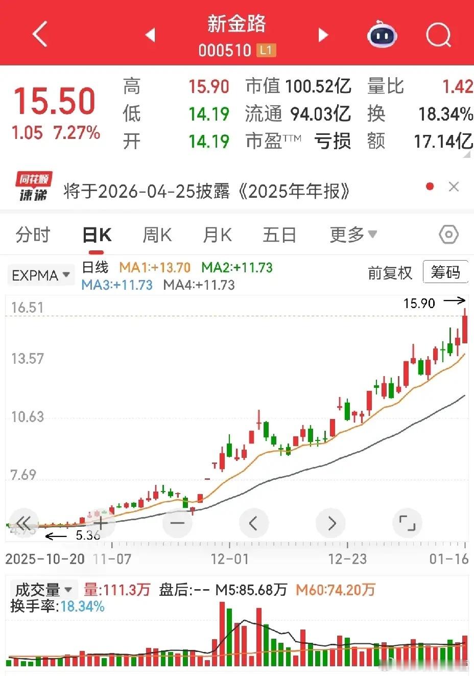 稳字当头,慢牛才是真赢家!管理层定调“稳字当头”,其实早已把市场信号说得明明白白——要涨,但要稳稳的涨;要向好,更要可持续的向好。那种急涨急跌的狂欢终究是镜花水月,唯有长期投资、理性投资、价值投资,才能接住“长钱长投”的时代红利。什么样的上涨才符合期待?不是无脑拉涨的暴涨,而是“涨多跌少、走走停停”的从容。就像新金路从8块多到15块多的翻倍之路,大盘震荡时它稳得住,趋势向好时它跟得上,没有密集涨停的张扬,却用扎实的走势诠释了“慢即是快”的智慧。这才是主力操盘的高水准,也是市场生态该有的模样——上合监管导向,下顺投资人心。监管层正在打通长期资金入市的卡点堵点,长周期考核机制落地、投资者保护加码,都在为“长钱长投”铺路搭桥。与其追逐转瞬即逝的热点,不如坚守有价值的标的;与其纠结短期涨跌,不如放眼长期收益。现在就去挖掘下一个“新金路”,不贪快、不冒进,跟着稳字诀,在慢牛行情里稳稳赚钱。