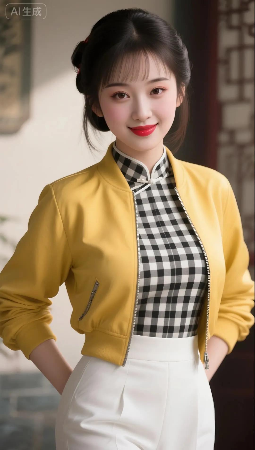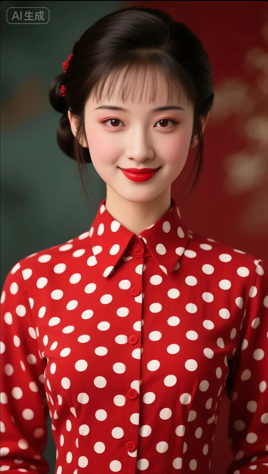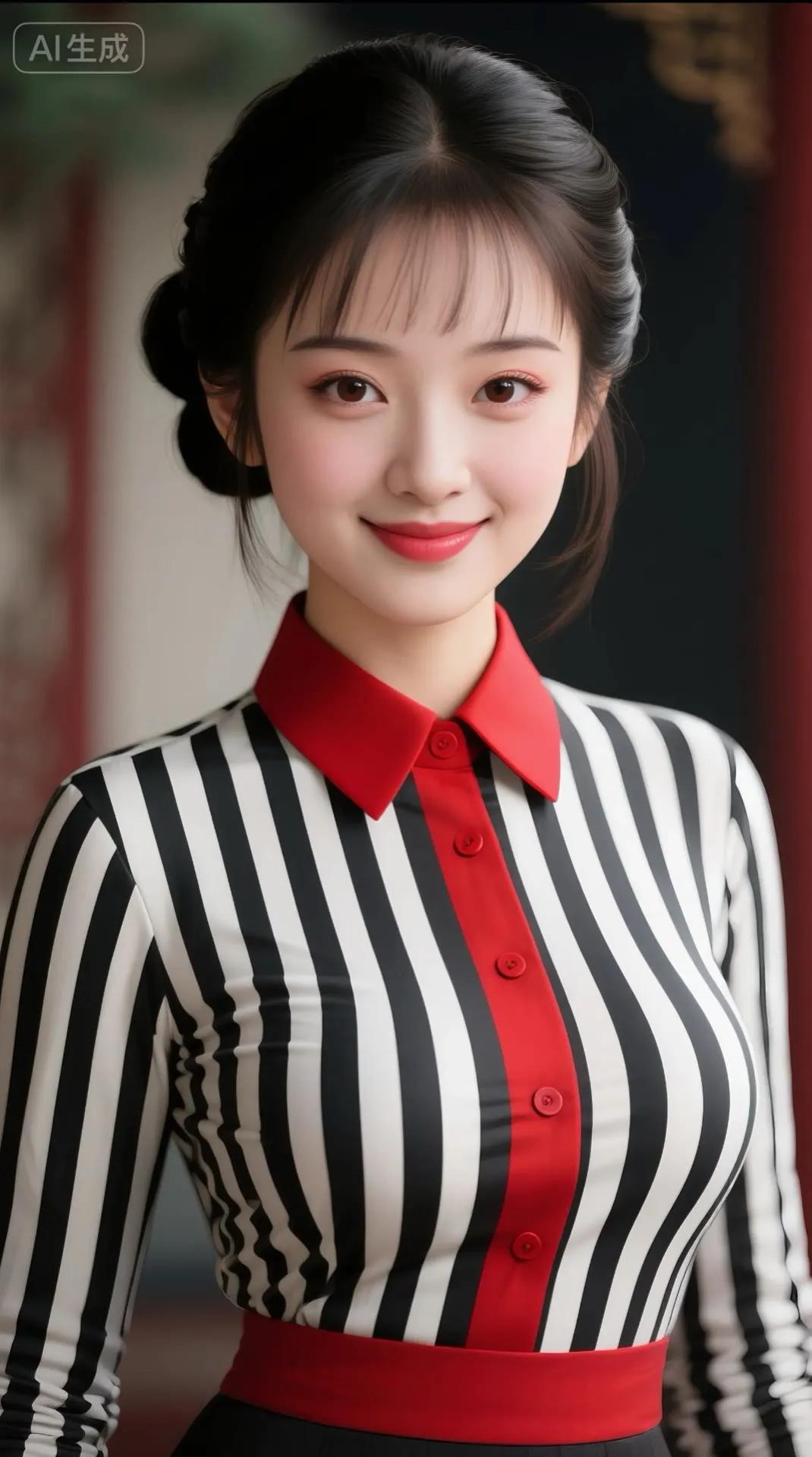 优雅黑发红唇,黑白条纹衬衫,复古风十足!👗💄👩❤️💋👩