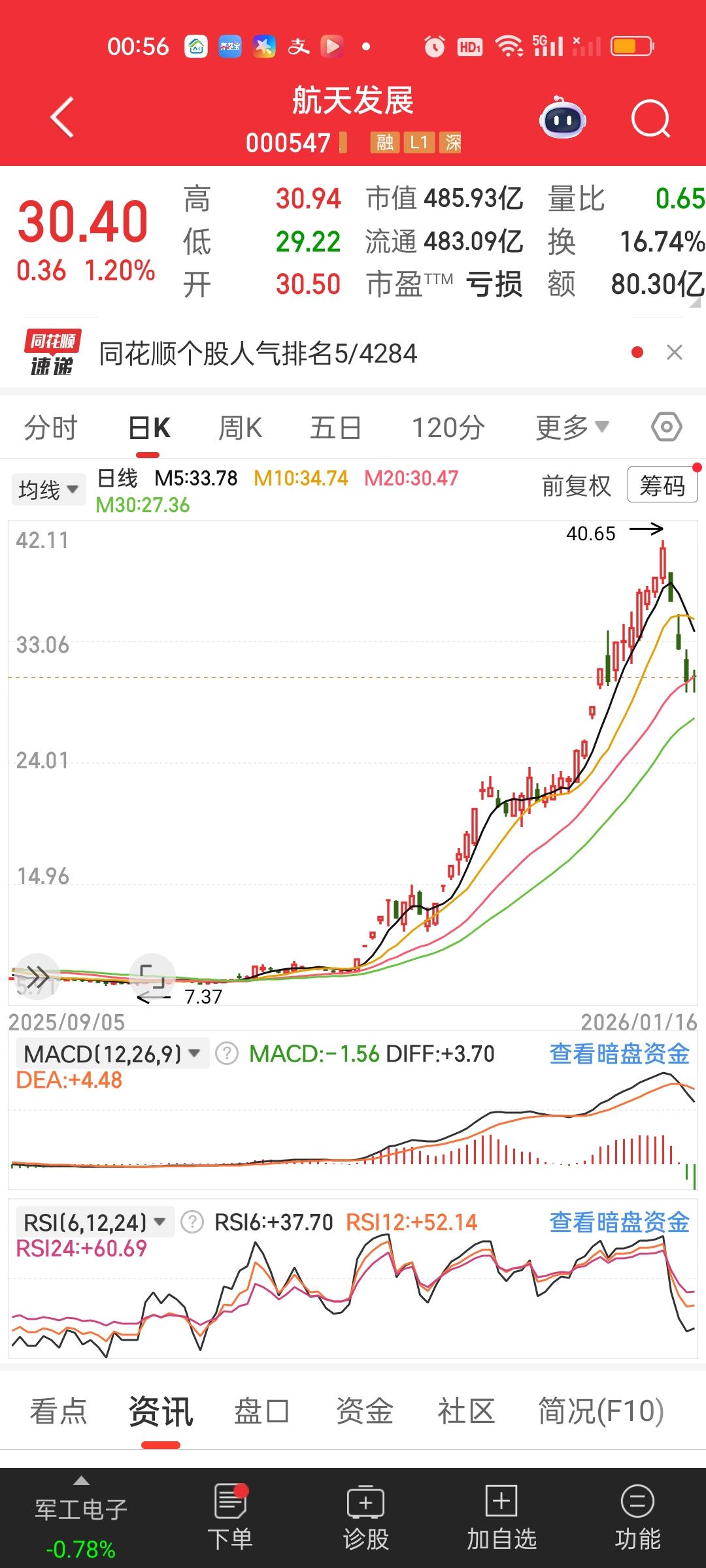 商业航天里面的核心个股目前来看还没到位,通常认为第一轮调整幅度起码在30%左右。