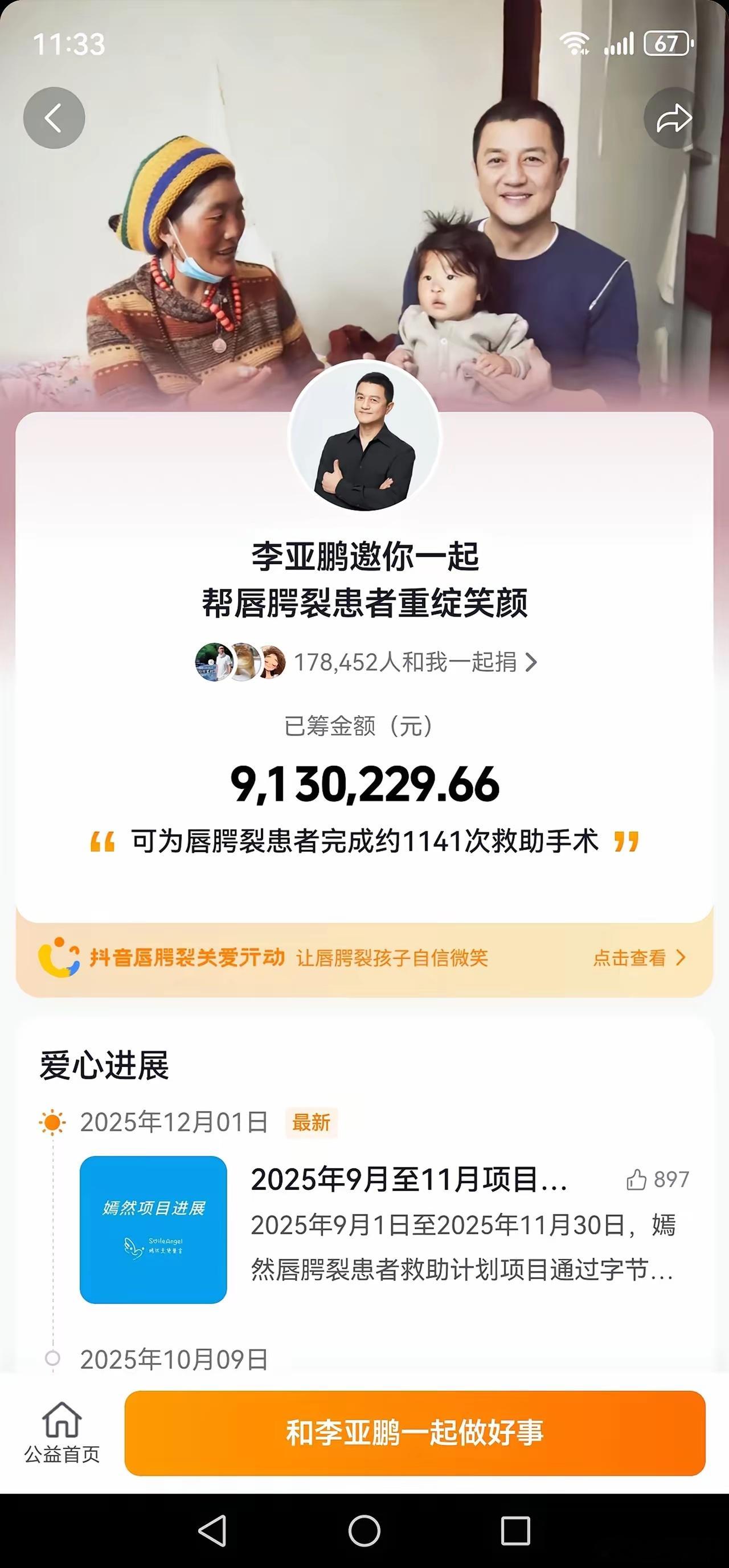 今天,嫣然天使儿童医院募捐已经到了913万了,共有17万余人慷慨解囊,为这个遇到困难的公益医院捐款,虽然这个款项离彻底摆脱困难还有差距。但是,我们依然能看见保留这个公益医院的希望,随着更多人知道这件事情,得到社会关注,知道这座帮助了1.1万名天生唇腭裂的公益医院目前遇见的困难,会有更多的人加入到捐助中来。虽然我只是一个几千人粉丝的头条作者,愿意通过自己的绵薄之力,倡议更多人献出爱心,让嫣然天使儿童医院能继续经营下去。爱心之人,加油!李亚鹏天使公益人嫣然天使公益嫣然儿童医院