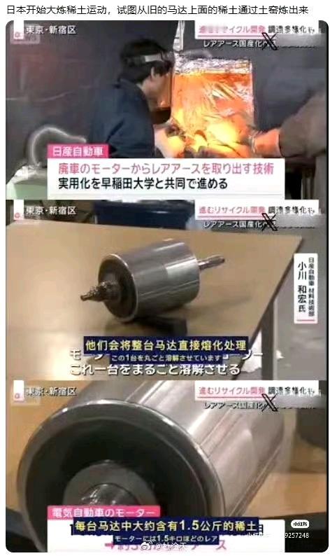 日本已经开始大规模从旧设备回收稀土,大概有两种路径: 第一种:高温熔融(火法):