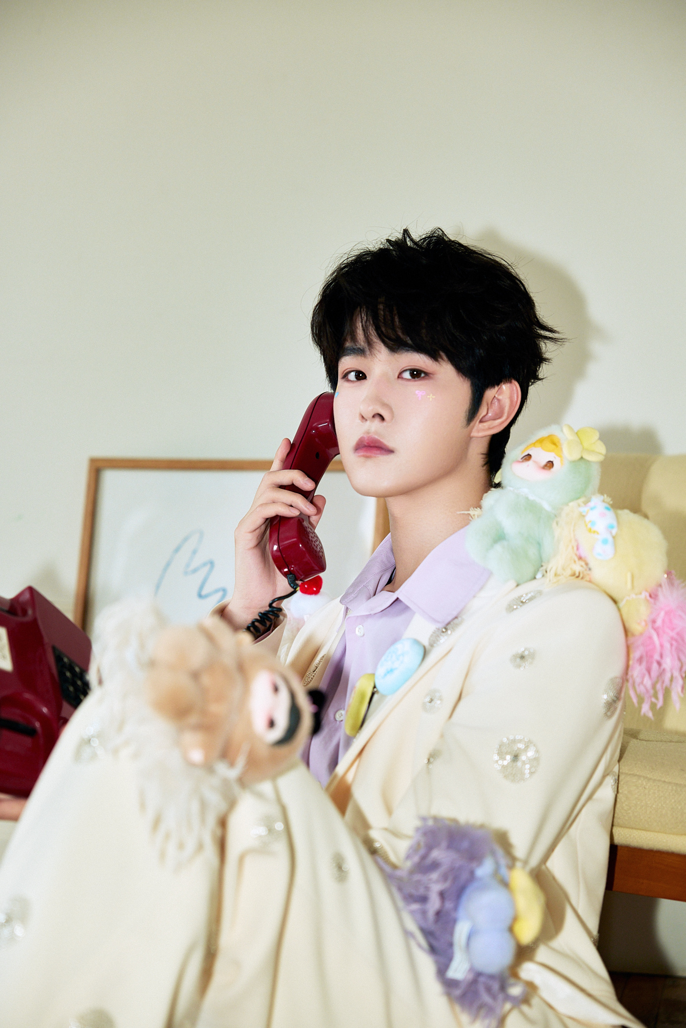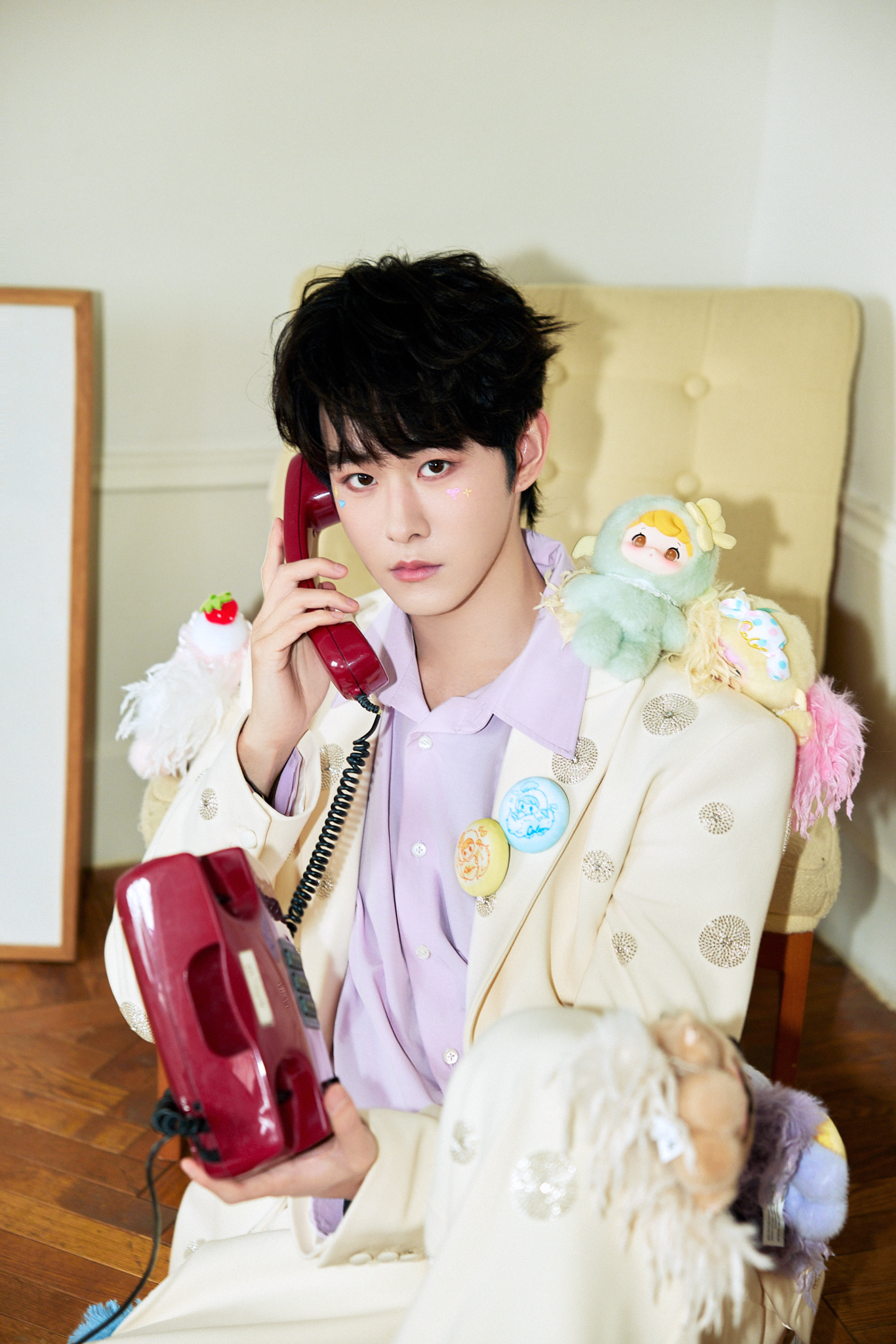 田嘉瑞今日出席范趣町品牌活动造型大片,身着BORC好莱坞唱片西服套装搭配衬衫,精心点缀品牌潮玩,妆容也做了特别设计,帅气又可爱的小田~