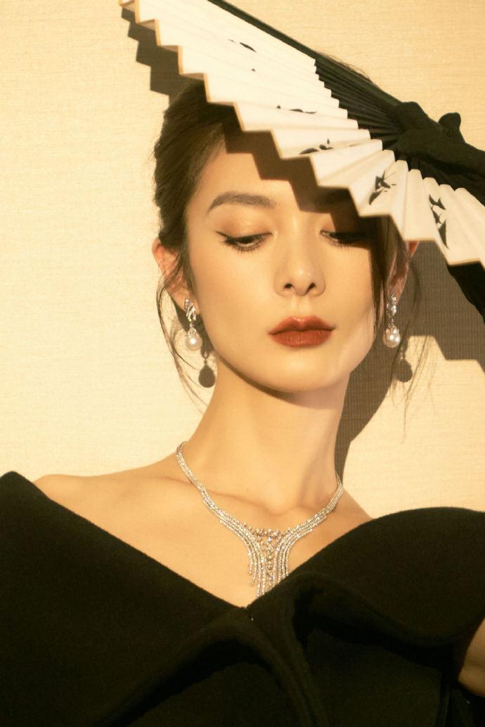 倪妮红唇黑裙,诉说浪漫月夜下的纯粹与优雅。