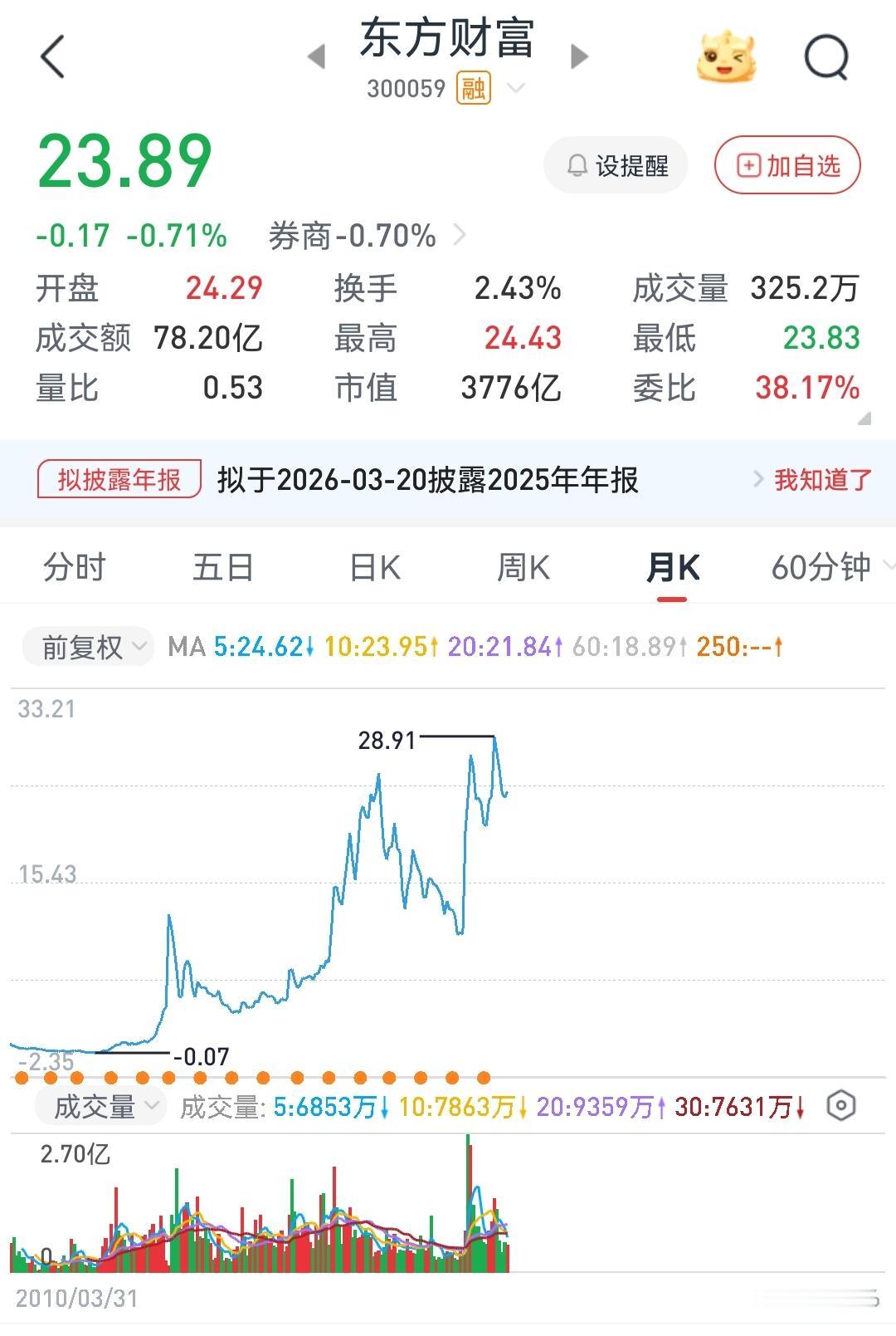 券商股真的没涨吗?还是股民不知足? 最近一年,很多投资券商的股友抱怨很大,说券商股这一轮牛市没涨。 我们以券商两大龙头中信、东财为例,看看券商股是不是真的没涨? 中信:历史最高价31.48,现价28.08,市盈率14倍,市净率1.30 东财:历史最高价28.91,现价23.89,市盈率30倍,市净率4.25 看附图两家券商的股价历史走势,股价都在历史次高的位置;估值也不低,尤其是东财,市盈率30倍,市净率4.25,这个估值对于券商行业已经是比较高了。 券商股能大涨吗 东方财富 中信证券 长期为什么不看好银行券商?