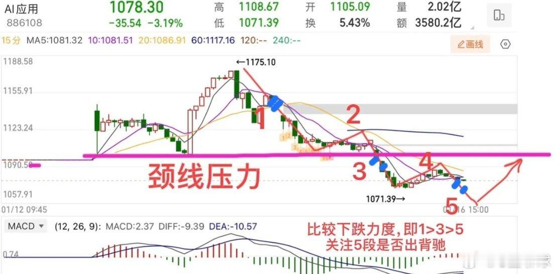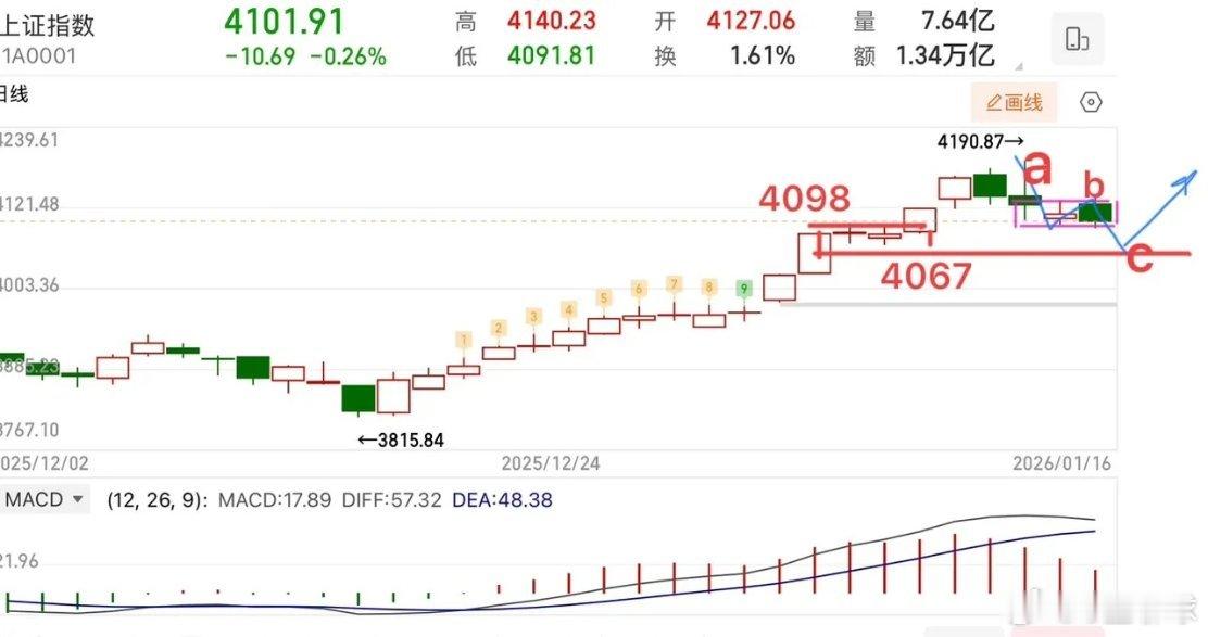下周A股策略:调整未结但下行有限,两大走势应对指南上周大盘冲高回落,背后既有政策面引导“慢牛”、抑制“疯牛”的调控意图,也有技术面本身的调整需求。面对这种节奏,我们无法改变,唯有顺势而为。从周线来看,多头趋势依旧稳固,均线多头排列的格局没有改变,周K线的突破形态清晰。当前的回调,本质上是突破后的回踩确认动作,只要不跌破4034关键支撑位,就属于正常调整范畴。此外,5周均线下周将继续上移,会成为短线重要的支撑防线。切换到日线视角,自4190点开启的下行走势中,分时图已形成小中枢。后续走势分两种情况:一是指数再创新低,但下跌力度未出现加速放大,那么这轮调整大概率会走出abc结构,只要c浪下跌力度弱于a浪,反弹契机就会出现;二是指数直接向上突破并站稳5日线,这种强势走法下,指数有望再度冲击4190点前高。所以,下周指数再下探无需恐慌,只要下跌力度可控,就是低吸布局的机会;若直接走强站稳5日线,则可顺势跟进看前高突破,做好这两种走势的应对即可。板块方面,上周AI应用、商业航天板块受“人工降温”影响持续走弱,下周大概率迎来技术性反弹。从技术面看,AI应用板块分时破位下探后,再创新低会触发反弹确认,但这并不代表调整彻底结束,需重点关注颈线位压力——个股若无法突破压力位,果断去弱留强,优先选择抗跌性强、技术形态未破位的标的。长期来看,AI应用、商业航天的主线趋势并未终结,2026年依旧是市场主角;半导体及相关细分领域,同样是具备高确定性的布局方向,短线调整恰恰是筛选优质标的的好时机。个人观点,仅供参考!不作为投资建议!