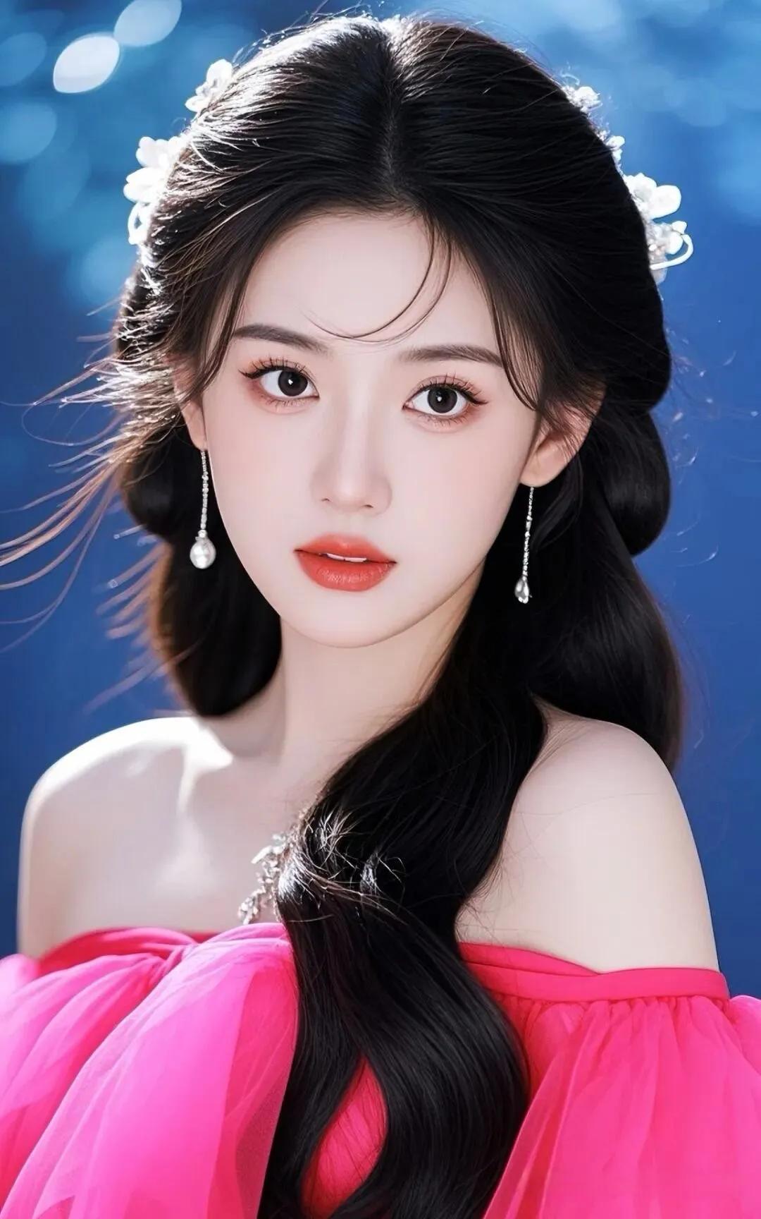 惊艳的古风美女,粉嫩服饰搭配精致发饰,宛如古代仕女图