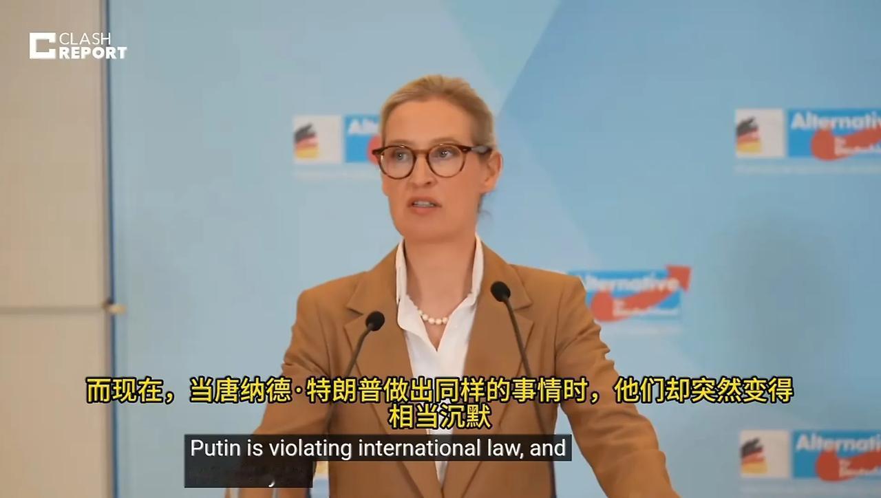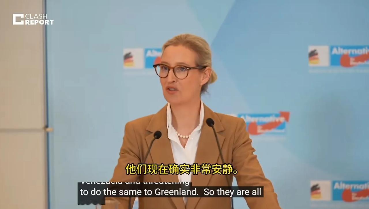 德国选择党的党首爱丽丝·魏德尔对德国媒体的双标进行了批评。 双标是西方的传统技能,在近几年更是广为人知。不过,同为西方人的魏德尔能公开把德国媒体的双标点出来,已经属于敢说真话的了。 西方这几年使劲在作,让自己在作死的路上狂奔,形象越来越不堪。所以,在老特将手伸向格陵兰岛之后,欧洲瑟瑟发抖,但国际社会却没几个站在欧洲这边义愤填膺地谴责美国。因为这是美欧互掐,搬小板凳看戏就行。