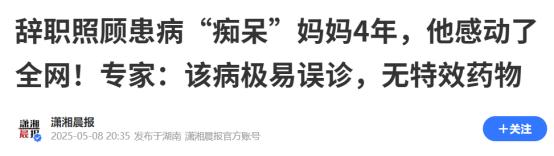 他感动了全网!2025年5月8日报道,2021年他毅然辞职,30多岁的他每天与57岁的母亲一起睡,洗澡也要母亲陪同,原因只有一个! 在儒家文化中,有一个教育观点“百善孝为先”。孝顺是我国的传统美德核心,自古就扎根在了我国的社会环境中。每个人孝顺父母的行为不同,所以当31岁的他辞职,终日贴身陪伴母亲时,收获到了很多的不满。 2025年5月8日的时候,媒体报道的一篇文章,让他收获到了全网的关注,更是感动了众多网友! 他的名字叫做张植,现如今30多岁,曾靠自己创业。但是在2021年10月份的时候,他却选择亲手关闭了创业公司,开始全职照料母亲。 30多岁的他每天与50多岁的母亲一起睡,就连洗澡的时候,母亲也要在旁边陪同。只因母亲确诊为颢叶痴呆后智力退化到了2岁,为了母亲的人身安全考虑,他才会选择贴身照料母亲。 即便经济压力巨大,但他仍旧没有选择动母亲的退休金。而是从事自媒体工作,去获得一定的收入。四年的时间,他无微不至的照顾母亲,而他的事迹也引发了社会的高度关注。 据悉,在他初做自媒体的时候,受到了不少的质疑,也有很多人对他说三道四。但他却屏蔽了那些外界的谴责,更加细心的去照料母亲。只因他坚持“你养我小,我陪你老”的理念。 他的这一举动令人为之感动,对此,您怎么看?欢迎评论区留言您的看法,我们一起讨论一下。 (信息来源:辞职照顾患病“痴呆”妈妈4年,他感动了全网!专家:该病极易误诊,无特效药物-潇湘晨报)