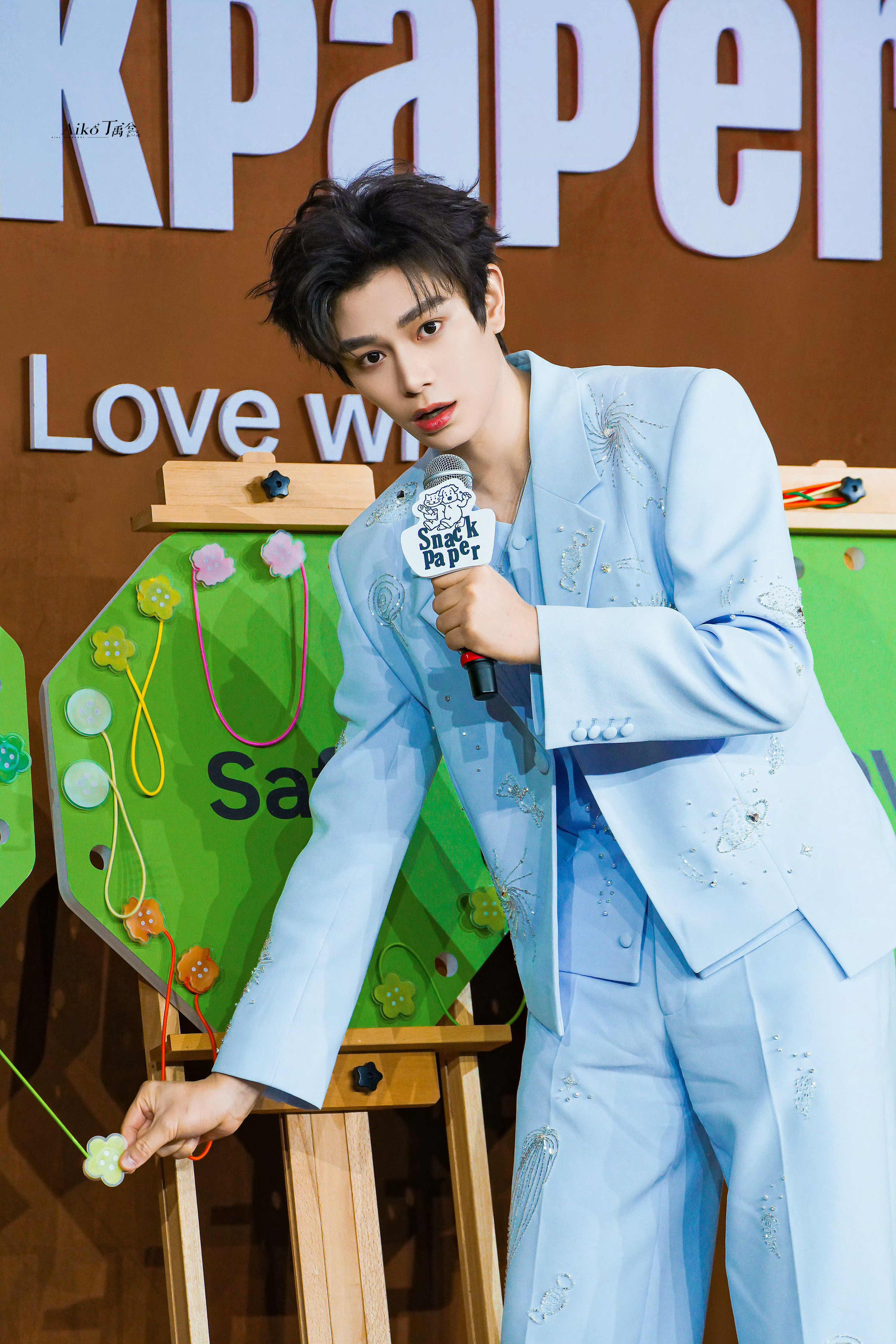 丁禹兮今日出席SnackPaper品牌活动图集,身着钉珠刺绣新中式套装内搭小V领平角马甲,整体色调和印花图案很适合今天的活动,帅气吸睛 ~