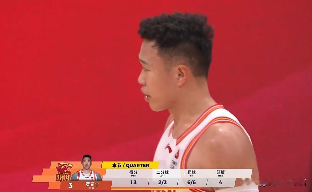“辽宁克星",贺希宁本赛季在对阵辽宁本钢的两场比赛中,分别拿下29分和32分!休赛期赴美特训取得显著成效。 北京时间1月18日,深圳队前往客场挑战辽宁队。此前首次两队的首次对决,深圳队在主场以93-90的比分险胜辽宁队。 这场比赛两队也是打得十分胶着,最终随着贺希宁的两罚全中,以及威尔斯的强投三分不进,辽宁队在主场以83-87的比分输给了深圳队,惨遭深圳队双杀。 在本赛季对阵辽宁队的两场比赛中,贺希宁都发挥出色,在这两场比赛中,他分别拿下了29分和32分。 首场与辽宁队的对决,贺希宁出场了34分钟,全场投篮18投11中,三分球4投0中,罚球9投7中,拿下了29分、6篮板、6助攻、4失误的数据。 第二场与辽宁队的对决,贺希宁出场了38分钟,全场投篮19投10中,三分球12投4中,罚球8投8中,拿下了32分、9篮板、2助攻、2抢断、3失误的数据。 截至目前,贺希宁场均可以拿下19.8分(本土球员得分榜第二位)、4.8篮板、3.7助攻、1.1抢断、0.2盖帽、1.8失误,投篮命中率:46.5%、三分球命中率:37.7%、罚球命中率:90.3% 其场均出场时间排在联盟第一位,场均出场时间高达35.4分钟。要知道本赛季的单场比赛时间为40分钟,保持高出场时间的同时,还能打出这样的数据,不得不说贺希宁这个赛季要比入选最佳阵容一阵的那个赛季还要强。 贺希宁能够在外援四节7人次和单场40分钟的比赛时间中,拿下如此不错的数据,确实是非常难得。 相比于得分榜第一的郭昊文和第三位的林庭谦,贺希宁是可以做到自己数据好的同时,又能带领球队取胜。 要知道南京同曦队和天津队目前在积分榜都是排名在第15名开外的球队,而深圳队目前排名在积分榜第六名的位置。 值得一提的是,王浩然暂时排在本土球员得分榜的第五名的位置。本土球员得分榜前五名的球员里面,深圳队就占了两位,倘若沈梓捷还在,估计深圳队这个赛季真的不惧CBA任何一支强队。 贺希宁去年休赛季在其经纪公司的安排下,前往了美国进行了一段时间的特训,回国后就跟随广东全运会男篮去打热身赛,还帮助广东全运会男篮夺得了本届粤港澳全运会成年组的金牌。 可以说贺希宁整个休赛季都没有荒废,这个赛季能够打出这样的表现完全就是他休赛季努力得来的成果。