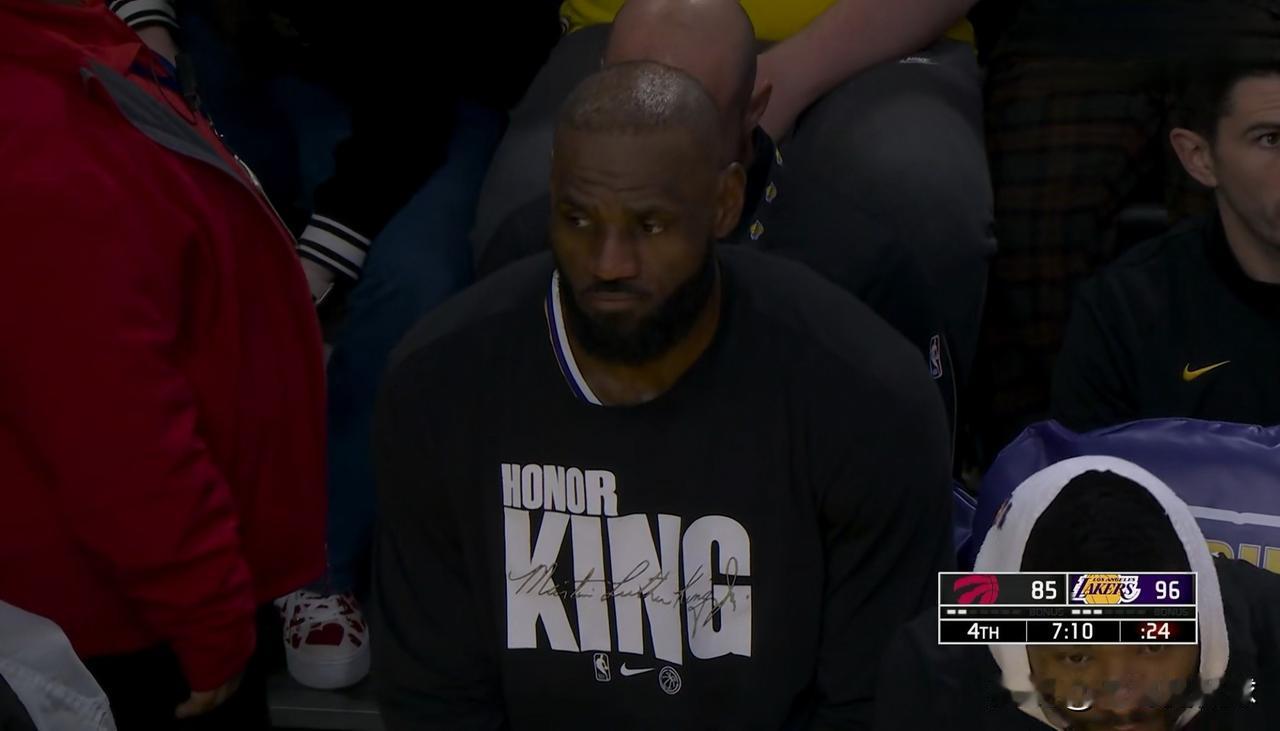 湖人超级巨星詹姆斯真是让人捉摸不透!在今天湖人主场迎战猛龙的比赛中,当时比赛进行到了第四节的7分10秒,湖人以96:85领先猛龙11分,可以说形势一片大好,然而当转播镜头给到湖人的替补席时,却发现詹姆斯在场下撇着嘴看起来有些不开心。正常情况下,当球队处于领先的时候,詹姆斯应该面带微笑才对,可是詹姆斯看起来一点都不高兴,真是让人捉摸不透。
