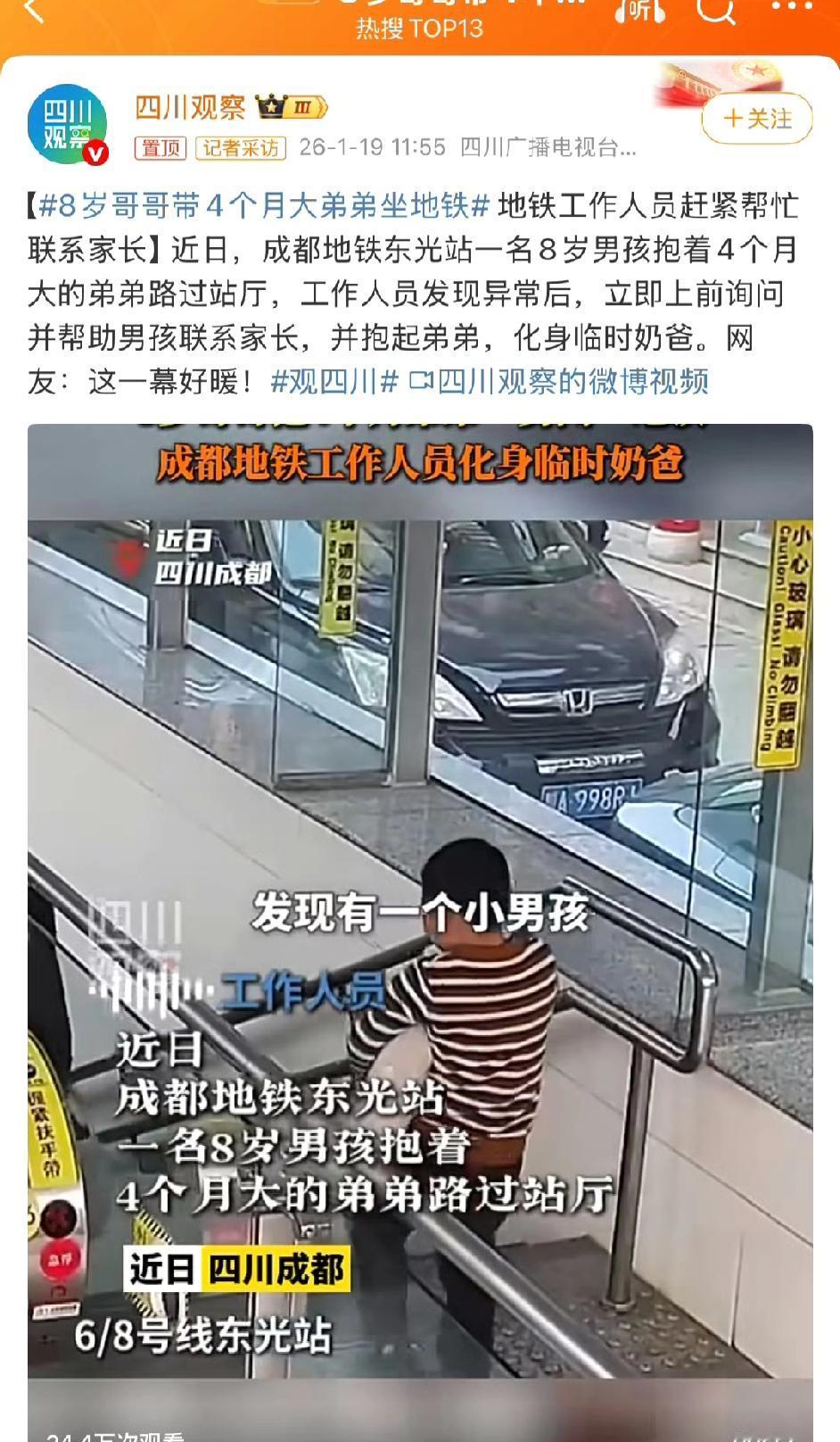 车厢里,冒出个让人一眼锁定的小组合:一个背着蓝色书包的小哥哥,怀里还抱着个更小只的“人类幼崽”。小哥哥才8岁,脸蛋稚气未脱,手臂却像模像样地环着4个月大的弟弟,一手托屁股,一手扶奶瓶,奶盖晃啊晃,愣是没洒出一滴。旁边的大姐看得直吸气:“我的天,这谁家孩子带谁家孩子?” 爸妈临时加班,家里又没老人能顶上,哥哥自告奋勇:“我带弟弟去找妈妈。”于是,他先把尿不湿、奶粉、备用小衣服塞进自己书包,侧兜再塞两包湿巾,像个小大人似的检查三遍,才出门。下楼、进地铁口、刷卡、坐扶梯,每一步他都踮脚完成,安检小姐姐看他双手不得空,直接开绿色通道,还顺手帮他拎了一下推车。哥哥奶声奶气地说了句“谢谢姐姐”,惹得后面一排手机举起拍视频。 车厢里人多,他把弟弟横抱在胸前,用身体隔出一块“软垫”,生怕别人挤到。弟弟脸蛋软嘟嘟,一颠就笑,哥哥也跟着笑,两颗小虎牙闪闪。旁边上班族本来一脸麻木,看见这画面,嘴角自动上扬,有人悄悄给他让出爱心座位。哥哥摇头:“我站着就行,弟弟太小,坐不稳。” 他担心弟弟饿,提前把奶粉分装进一次性小袋,刻度标得清清楚楚;怕奶凉,他把奶瓶塞进保温套,再用自己保温杯里的热水隔层加热。弟弟喝完打嗝,他熟练地竖抱拍背,节奏稳得像个老父亲。对面大叔看呆:“我三十岁了拍嗝还拍不明白。” 视频被传上网后,评论区炸成育儿经验交流区:有人夸“别人家的孩子”,有人提醒“安全还是第一位”,还有人艾特自家老公:“看看人家8岁,你28岁连尿不湿正反面都分不清。”热度一起,地铁官方账号也跑出来点赞,配文:“小小男子汉,今天你是地铁最靓的崽。” 爸妈后来赶到约定站点,远远就看见哥哥牵着保育箱似的推车,弟弟在里面睡得打小呼噜。妈妈冲过去一把抱住俩娃,眼泪打转,爸爸边道歉边拍照记录:“今天开始,你就是咱家首席哥哥。”哥哥倒是淡定,拍拍妈妈后背:“别哭,我作业都写完了。” 有人担心孩子太小,不该承担这些;也有人感叹,生活逼出超能力。可镜头里,哥哥的眼神里没有勉强,全是“我能行”的小骄傲。或许这就是手足情的神奇之处:平时抢玩具抢得鸡飞狗跳,关键时刻自动升级成“护崽模式”。地铁继续往前开,车厢里故事天天换,但今天这一站,被这对最小乘客组合暖到的人,估计能记一整年。人类幼崽 怀里的人类幼崽 来源:四川观察