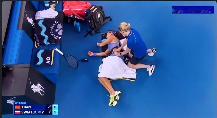 揪心的一幕又发生了!! 袁悦因为第一盘拼得太狠了,腰部出现了不舒!!在第二盘局分0-3的情况下,申请了医疗暂停!!接受赛会医护人员场边治疗!!希望没有大碍吧!!目前医疗暂停已经结束,比赛继续进行,袁悦一回来又成功的破掉斯瓦泰克的发球局,将局分扳成1-3、加油加油!!袁悦 斯瓦泰克