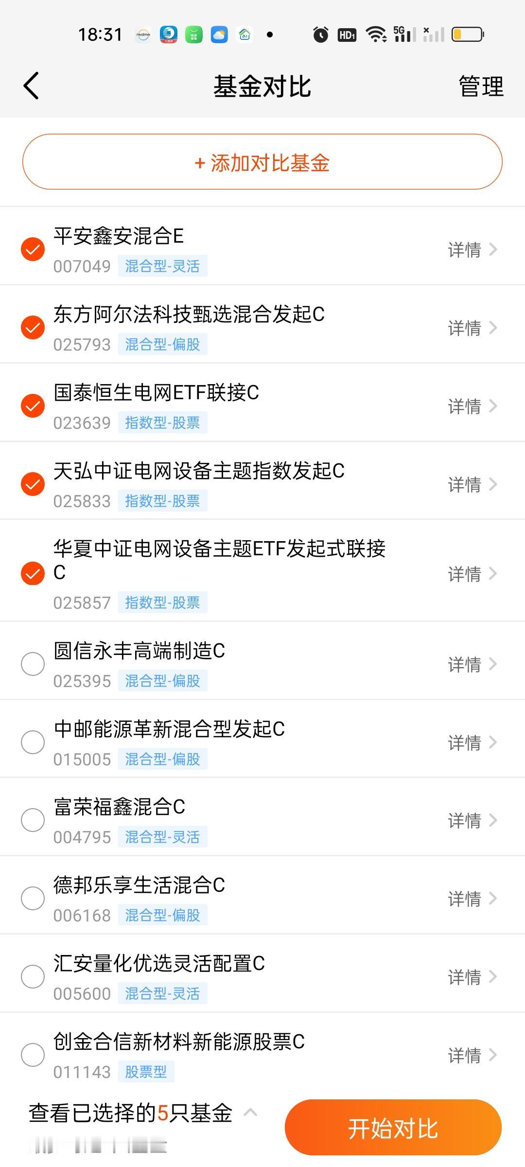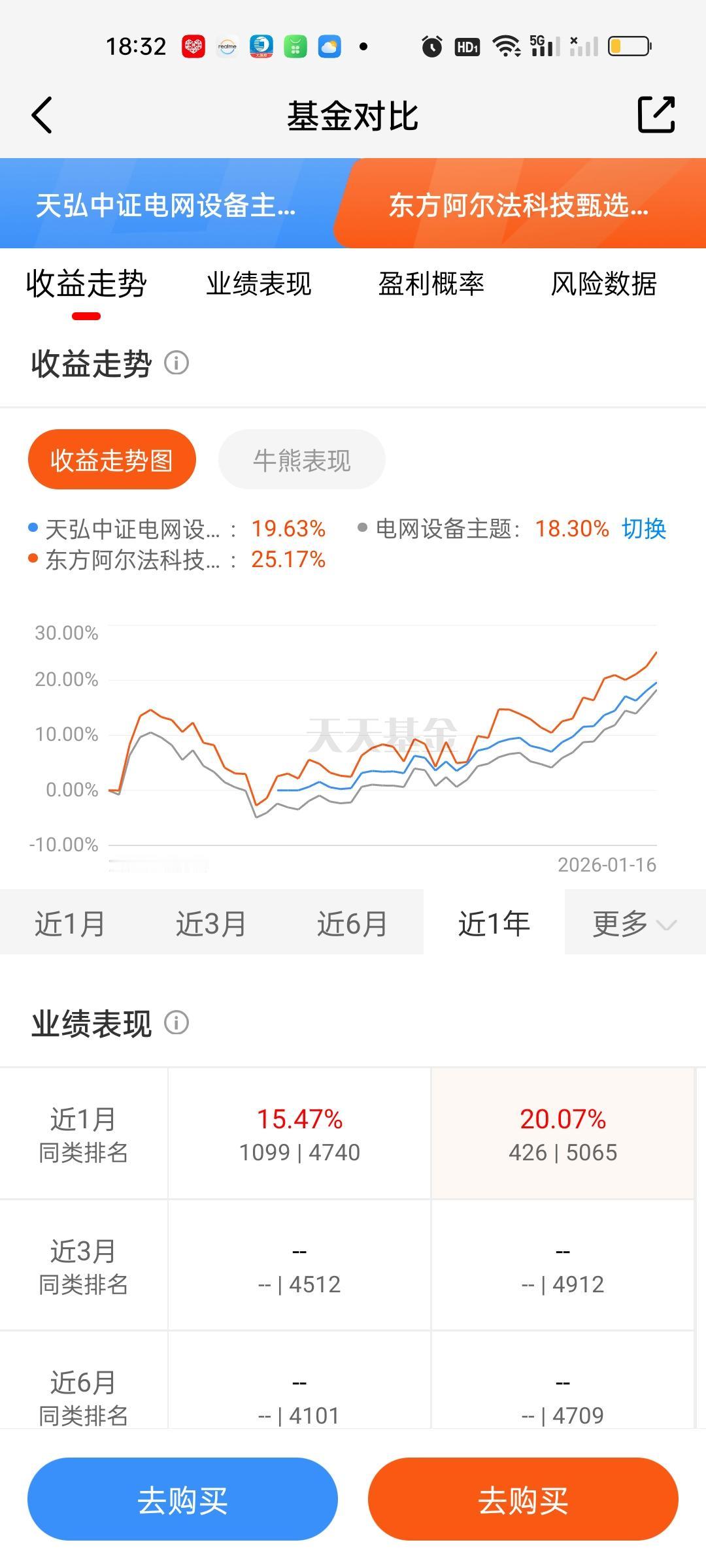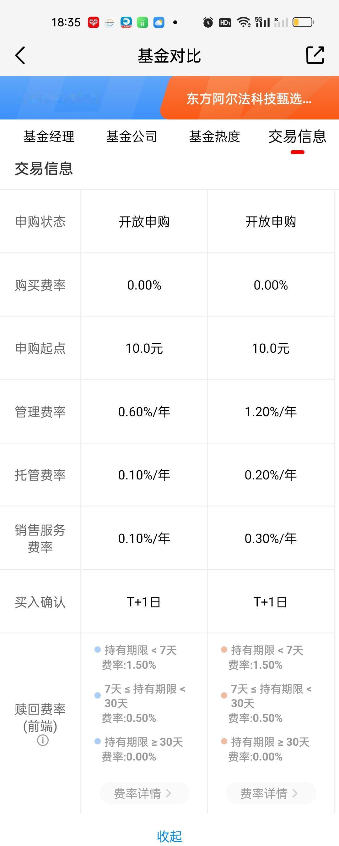电网设备今天的涨幅是断崖式领先的,但打开这个板块目前只找到5只基金,其中3只指数型,2只股票型。指数型C类份额自然是买入免费,持有7天赎回免费,股票型C类份额基本上是30天免费赎回。指数3个基本差不多,股票型东方阿尔法科技甄选近1个月涨了20.07%,有点潜力的样子。