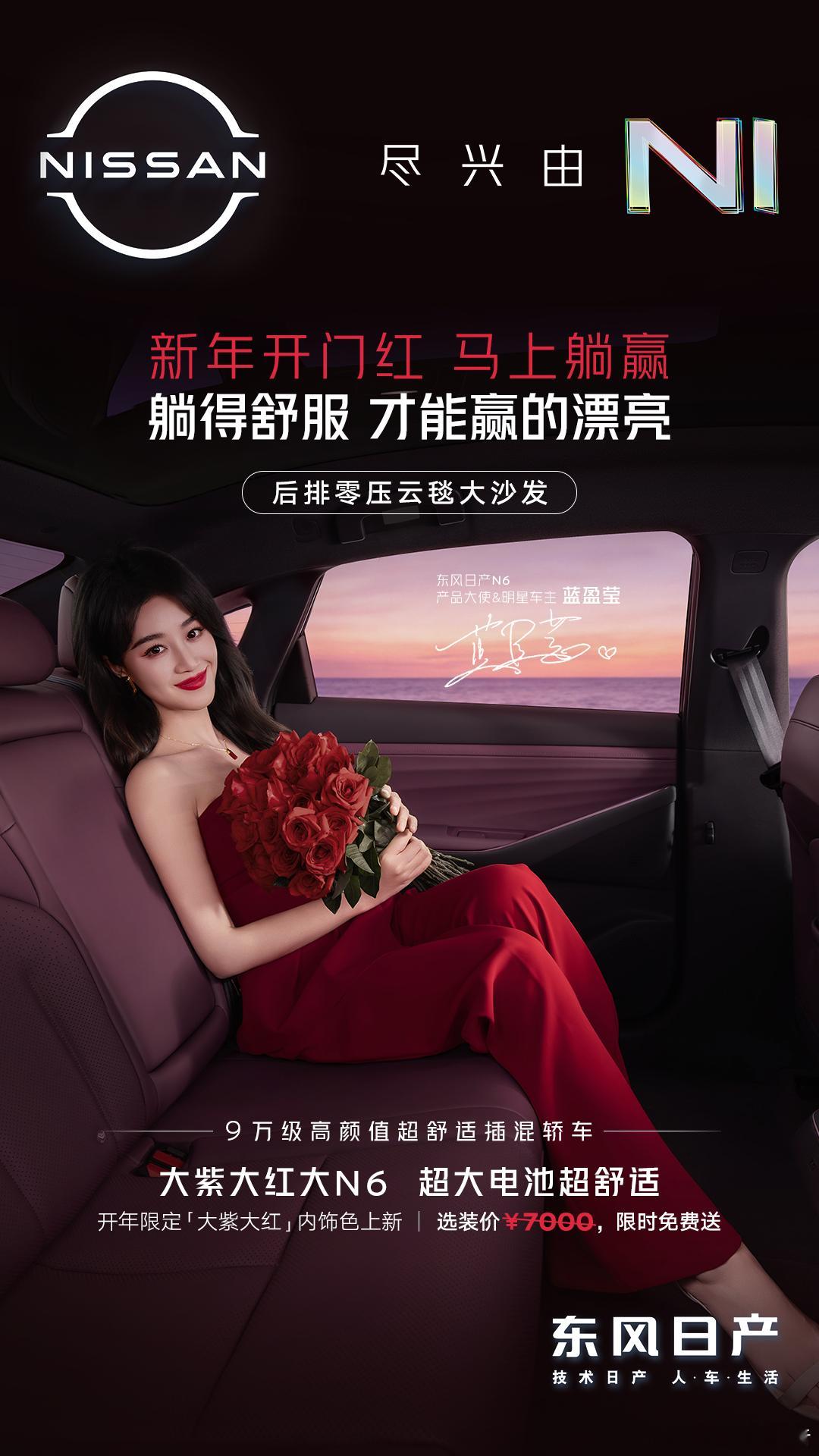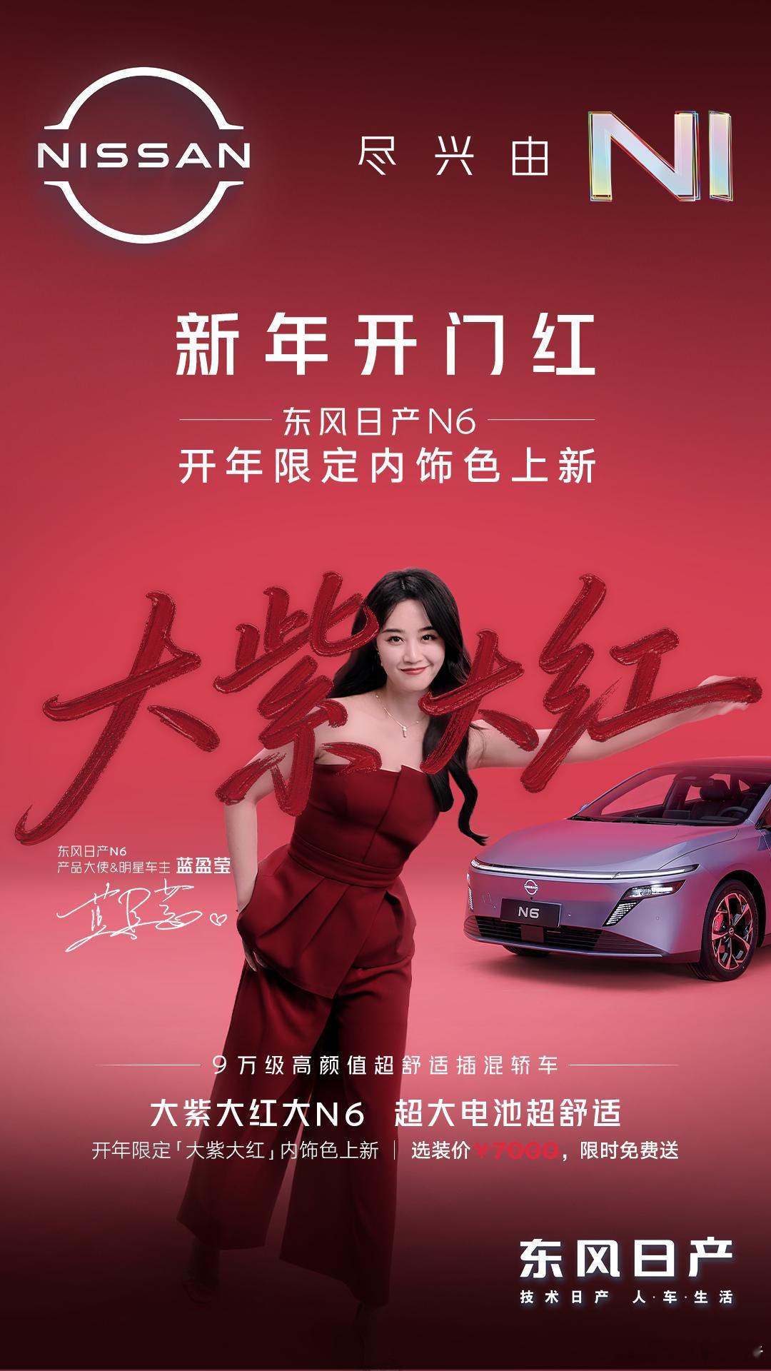 东风日产n6上线「大紫大红」马年限定内饰,寓意红运祥瑞,携手蓝盈莹推广。这款9万级高颜值超舒适插混车型,限时免费选装该内饰,助力开启新年红运模式。新年开大紫大红大N6N6开门红盈莹蓝盈莹开N6红运当头9万级高颜值超舒适插混N6