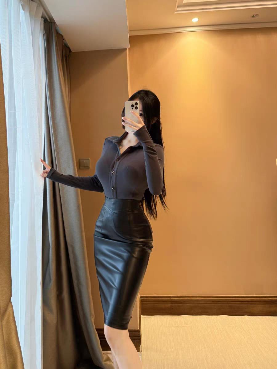 高级感弹力修身半身裙!女生怎么穿紧身裤才好看 矮个子阔腿裤搭配