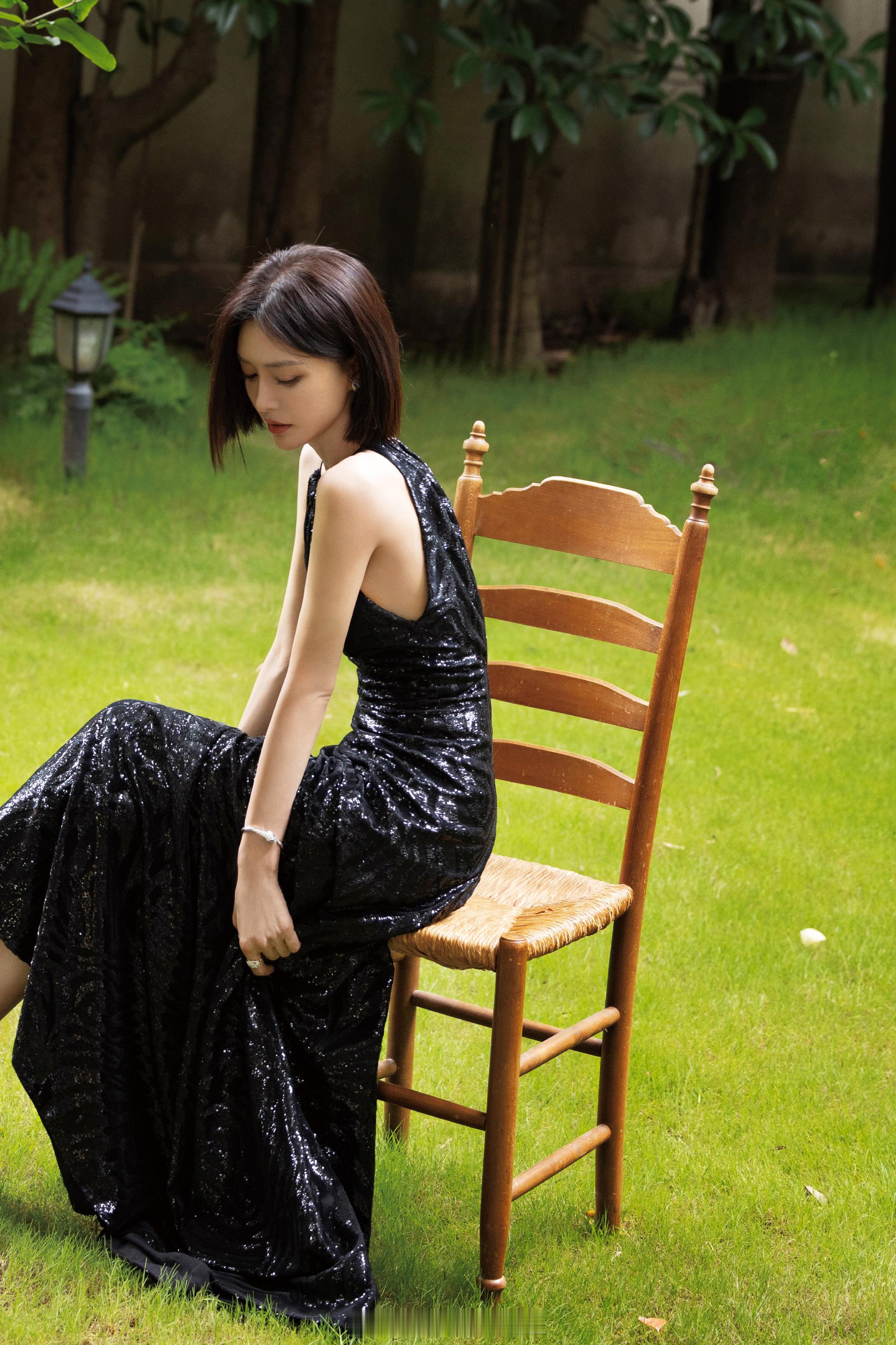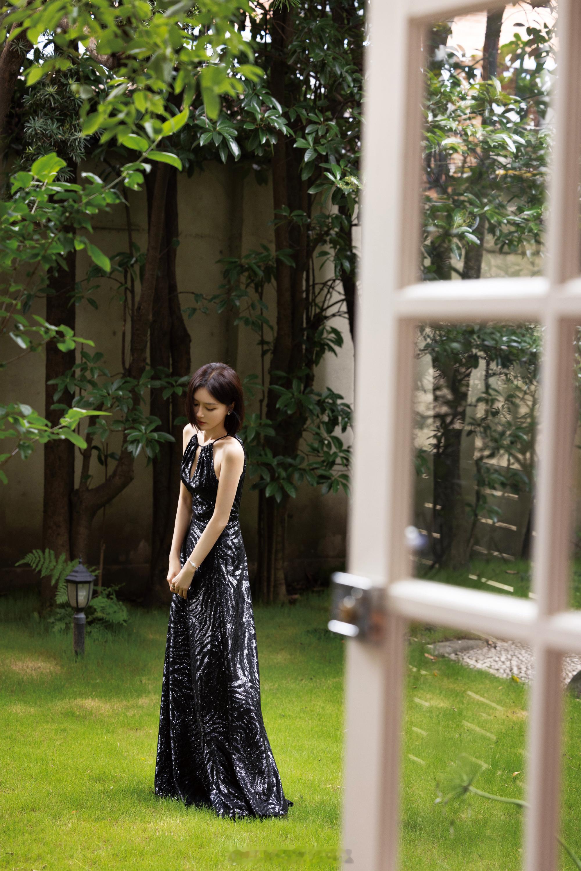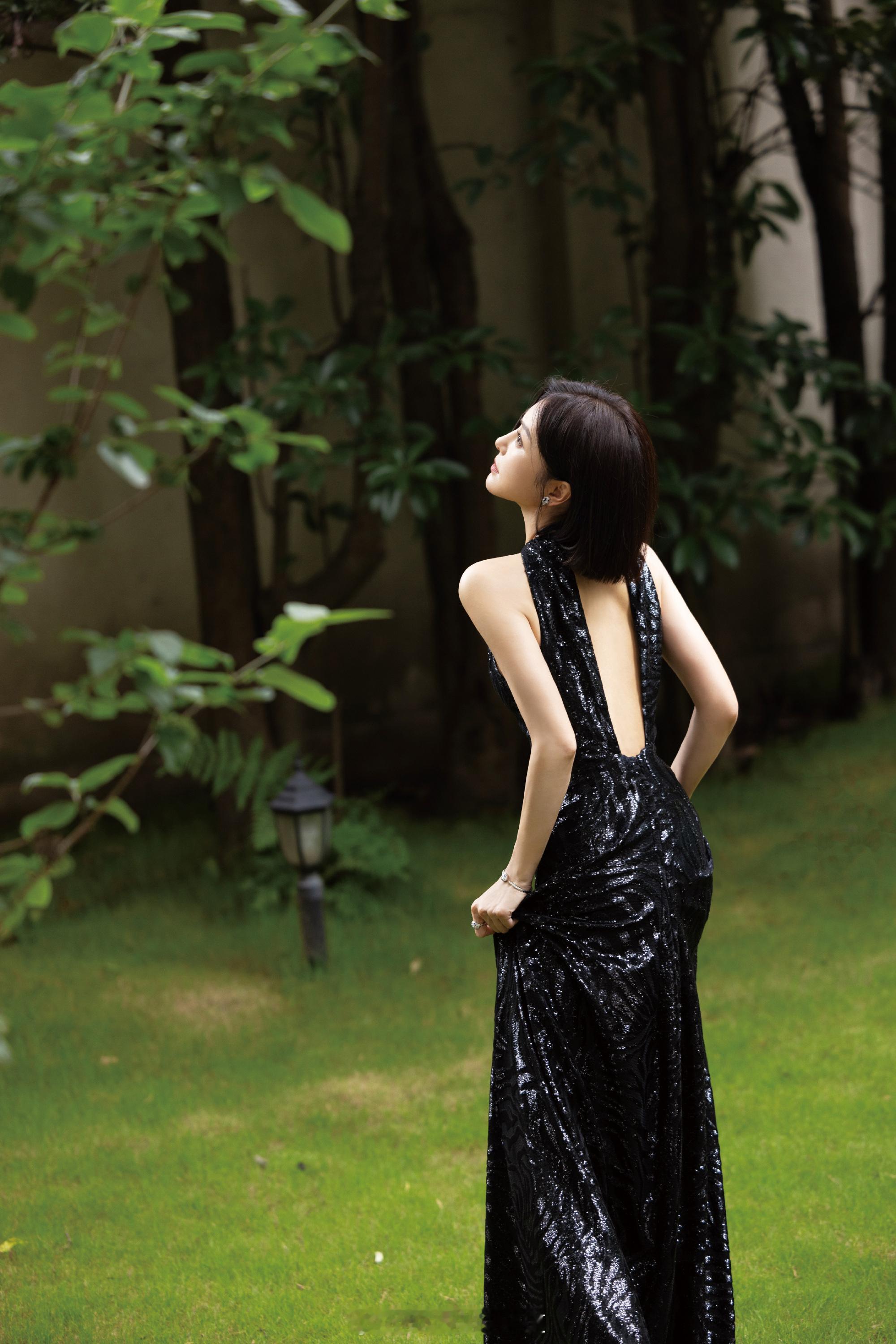 秦岚干练短发极简露背黑裙