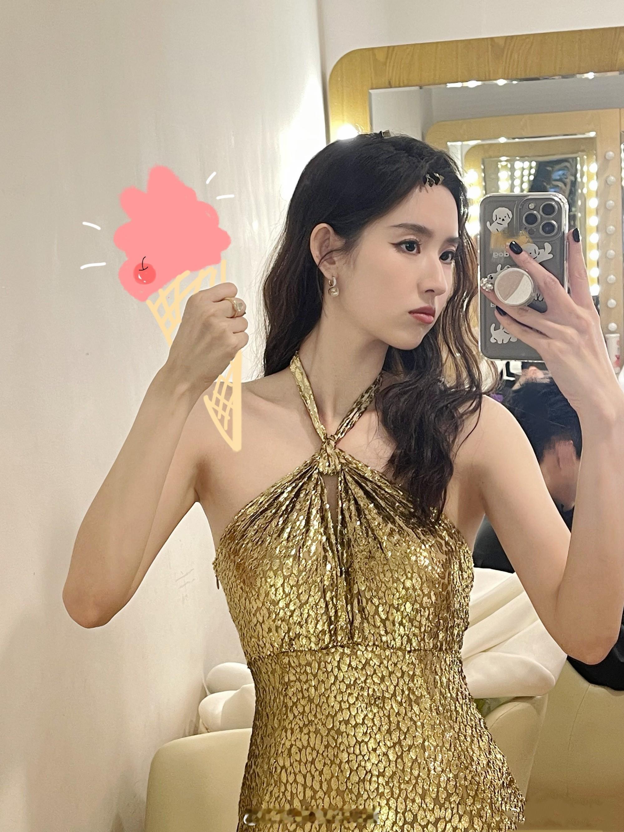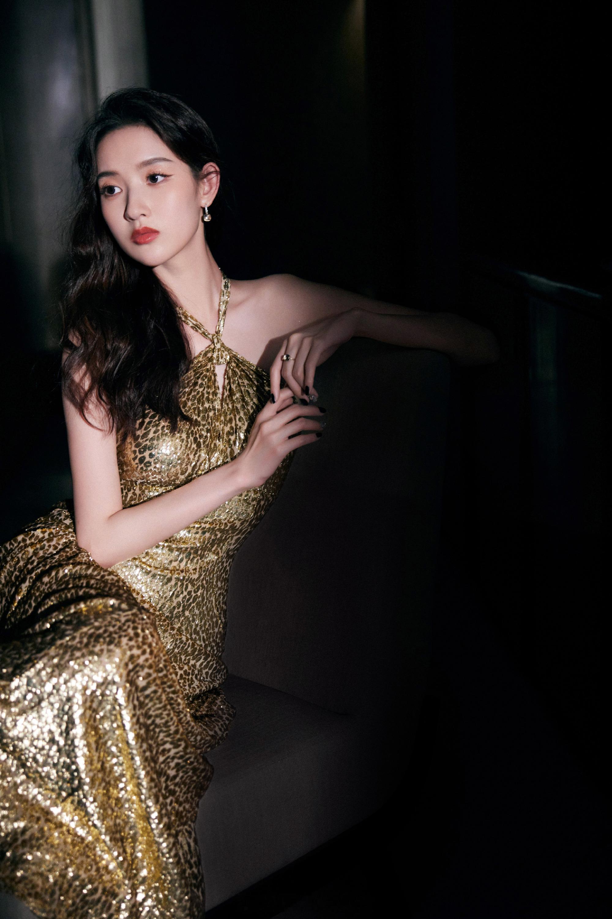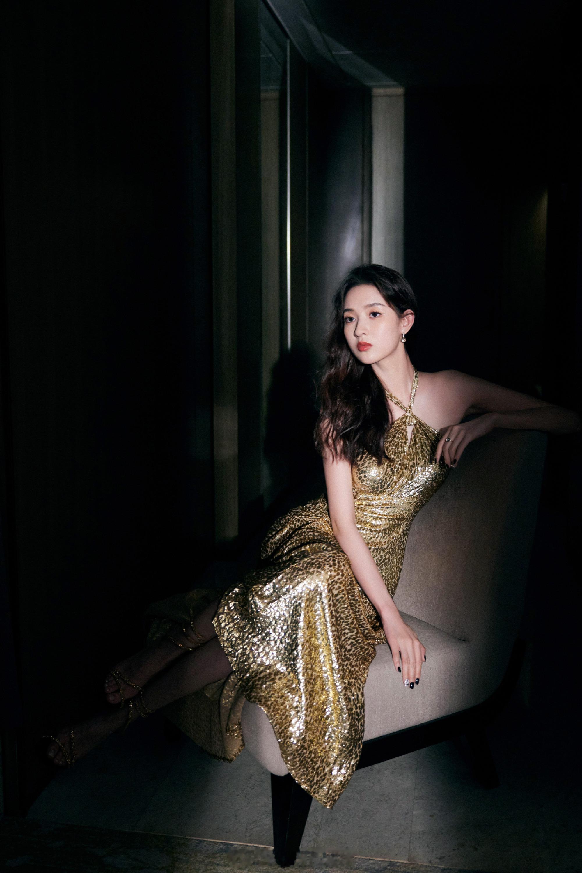 赵丽颖一身高定鎏金镂空礼服裙