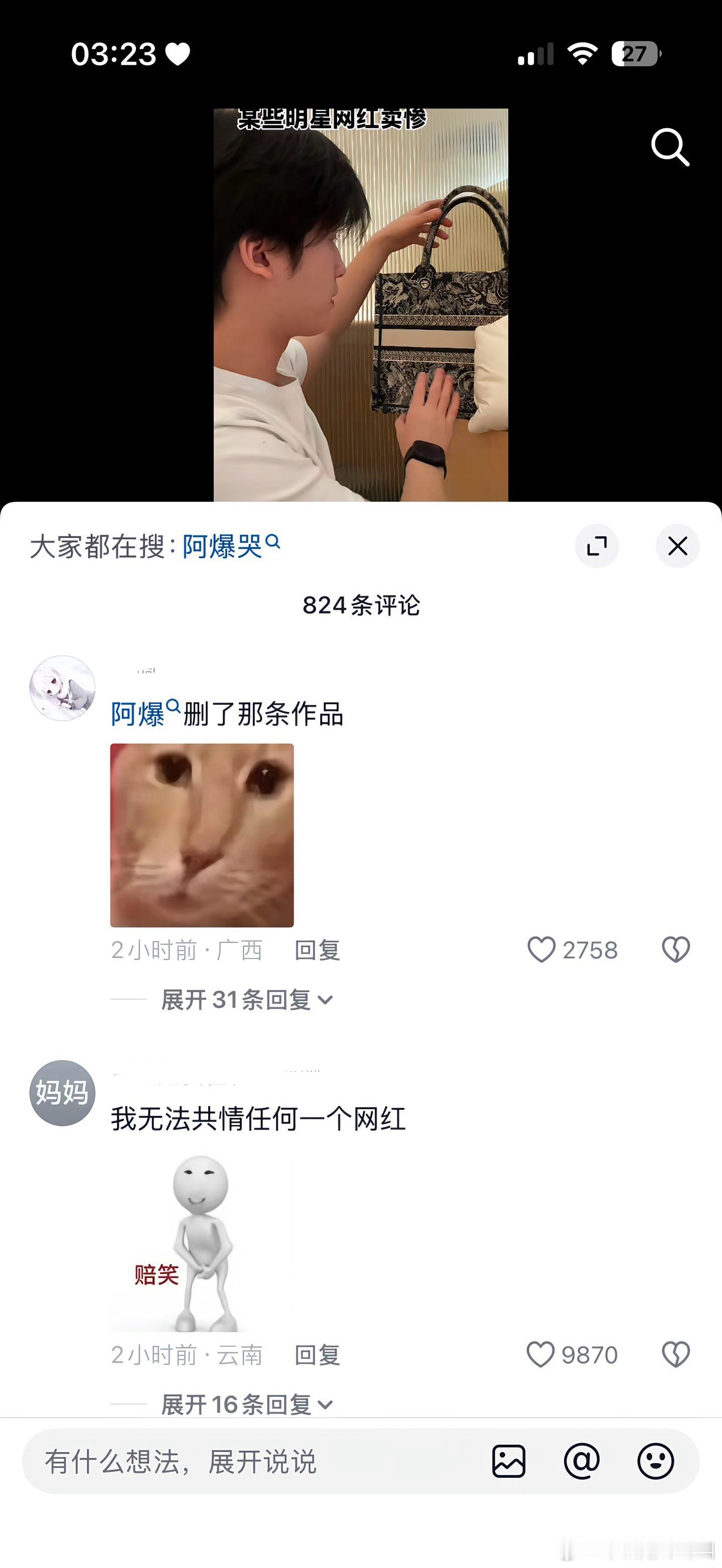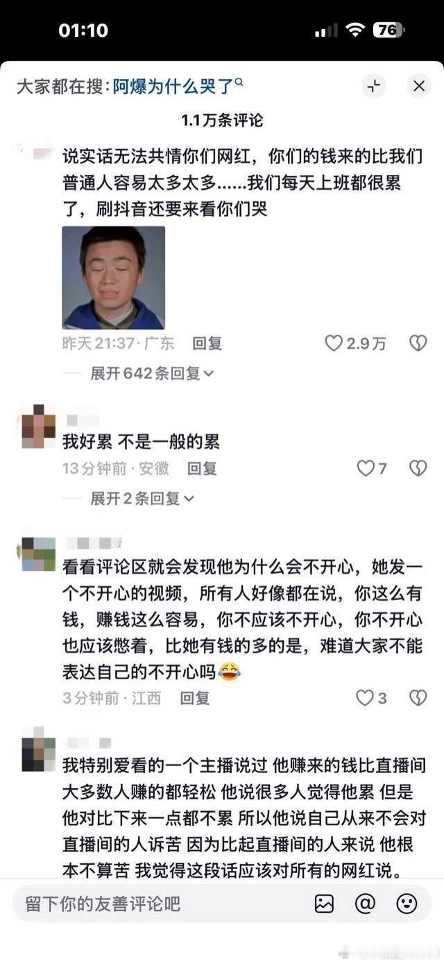 阿爆私密账号好像是因为发了一条动态在流泪被网友批评了