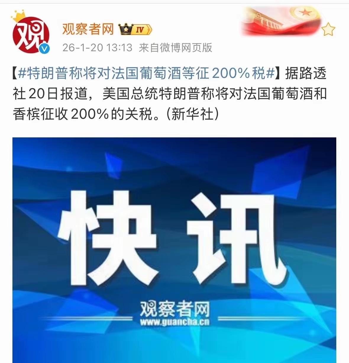 真的是一觉醒来,有些人的天塌了! 这回轮到法国人, 特朗普这 暴脾 气, 简直一点就着。 就因为被拒绝, 直接下了死手。 200%的关税, 听着都吓人。 这哪里是谈生意, 分明就是泄愤。 谁能想到呀? 堂堂大国博 弈, 竟如此儿戏 2026年1月19日, 这一天很关键。 马克 龙硬气了一回, 说了个“不”字。 特朗普搞 了 个圈子, 叫加沙“和平 委员会”。 想拉 法国入伙, 给自己撑场面。 结果吃了闭门 羹, 马克龙态度很坚决。 理由非常 充分, 不能绕过联合国。 这下捅了马蜂窝, 老特彻底怒了 报复来得太快, 完全不讲武德。 不仅威胁加税, 还搞人身攻击。 当众嘲讽马克龙, “很 快就要卸任”。 这话太伤人, 一点面子不给。 以前是钢铝税, 现在盯上香槟。 200%的税率, 这是要搞死酒商。 美法友谊小船, 说翻就翻了。 什么盟友情谊, 在利益面前, 简直一文不值 情绪化 治国, 真的很可怕。 把国家大事, 当成儿戏一样。 谁让他不爽, 他就搞垮谁。 完全不顾后果, 只图自己 痛快。 这种决策方式, 让盟友怎么处? 今天是你法国, 明天指不 定是谁。 看似为了美国, 实则透支信誉。 全球贸易体 系, 被 搅得稀碎。 这种疯狂举动, 只会加剧对立 网友评论区炸锅了: 外贸从业者:作为做外贸的,看到这加税就头大,本来生意就难,这不是添堵吗? 巴黎老饕:200%的税,以后在美国喝香槟得卖肾了吧,这操作也是没谁了。 国际观察员:特朗普这就是典型的霸凌主义,不听话就打,马克龙这次挺直了腰杆,佩服。 吃瓜群众:这哪里是总统,简直就是个任性的老小孩,想一出是一出 在本人看 来, 特朗普这种做法, 实在是有失水准。 作为一个大国领袖, 理应成熟稳重。 动不动就挥舞关税大棒, 不仅解决不了问题, 反而制造更多矛盾。 情绪发泄爽一时, 国家形象毁一世。 这种伤敌一千, 自损八百的招数, 早就该被扔进垃圾堆。 国际合作讲究共赢, 而不是单方面碾压 这事还没完, 美欧裂痕加深。 特朗普的任性, 正在撕裂西方。 对于这种“情绪化外交”, 这事你怎么看