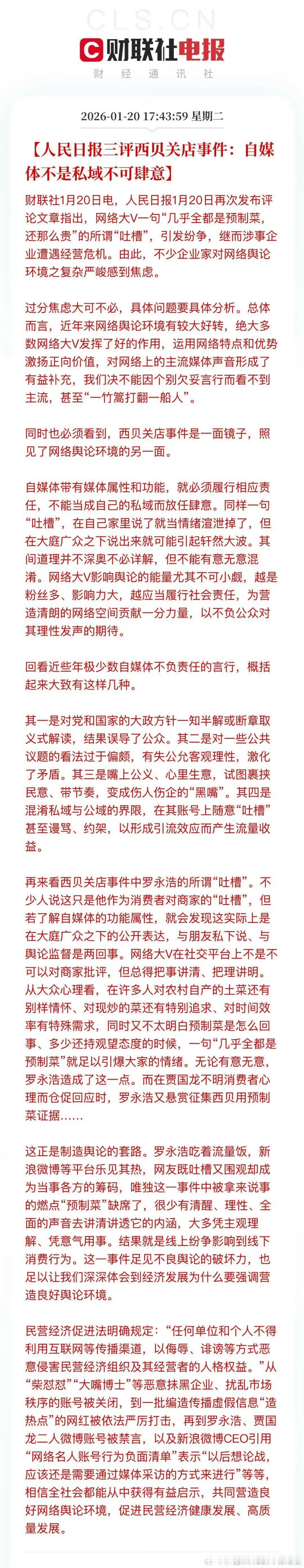 嘴上公义、心里生意,试图裹挟民意、带节奏,变成伤人伤企的“黑嘴”,罗永浩吃流量饭,是制造舆论的套路。这大概就是人民日报给罗太君的定位了,还得是人民日报