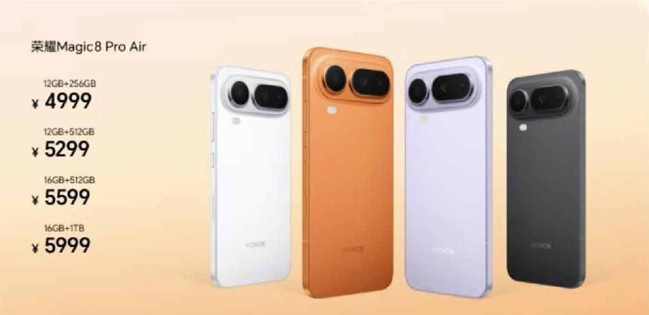 阿耀,你这价格是不是过于…… 荣耀Magic8 Pro Air价格: 12+256 4999元 12+512 5299元 16+512 5599元 16+512 5999元 最顶级的旗舰手机荣耀Magic8 RSR保时捷设计: 16+512 7999元 24+1T 8999元