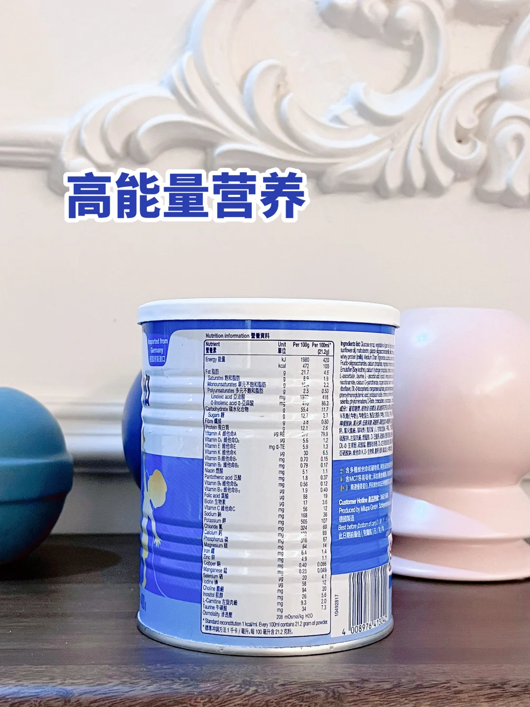 高能量选手!每100ml就有100kcal,乳清蛋白+酪蛋白的搭配好吸收,还加了精氨酸,家里有需要快速增重的娃可以冲这款