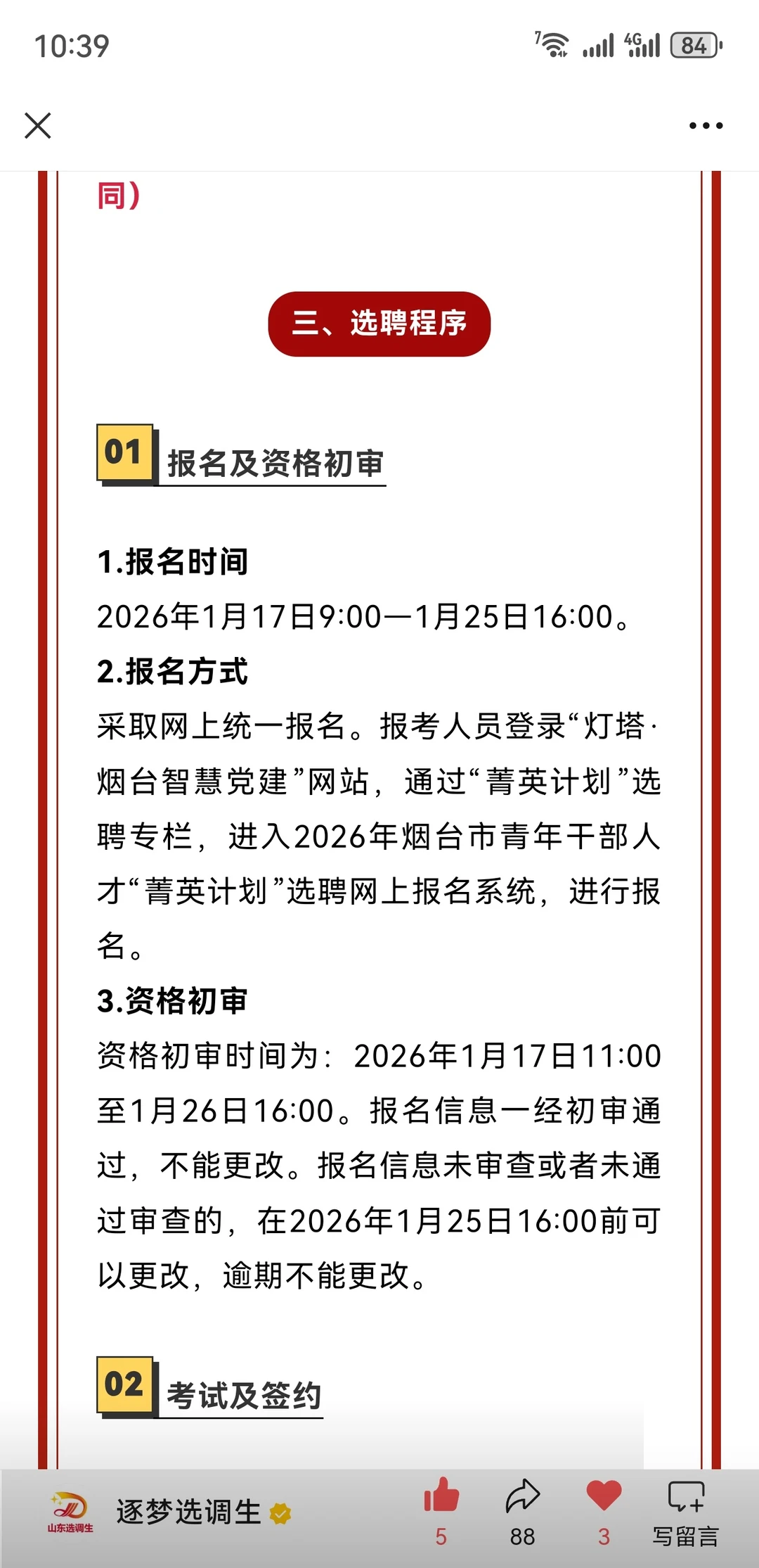 2026年国考将公布成绩 [赞R]无笔试!面试面试通过即给事业编制! 2026山东烟台“菁英计划”发布! [害羞R]高校范围在第二张!持续更新中 [向右R]“拿”=人才引进面试自学包[赞R]